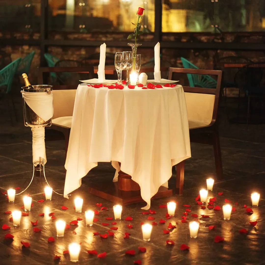 It’s intimate but still feels festive, like a sunset dinner date with your favorite person and zero distractions. Just vibes, flickering lights, and love in the air.