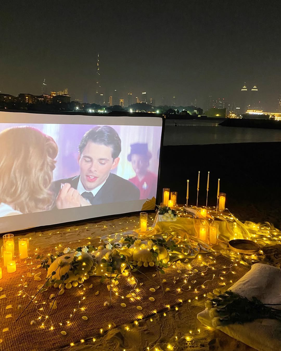 If “Netflix and chill” got a glow-up, this would be it. A private beach cinema under the stars, soft fairy lights twinkling around you, and the city skyline flickering in the background—what more could you ask for?