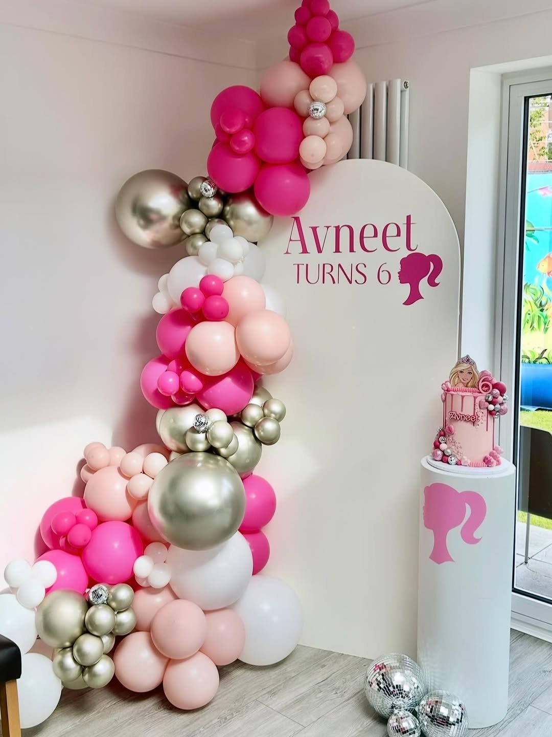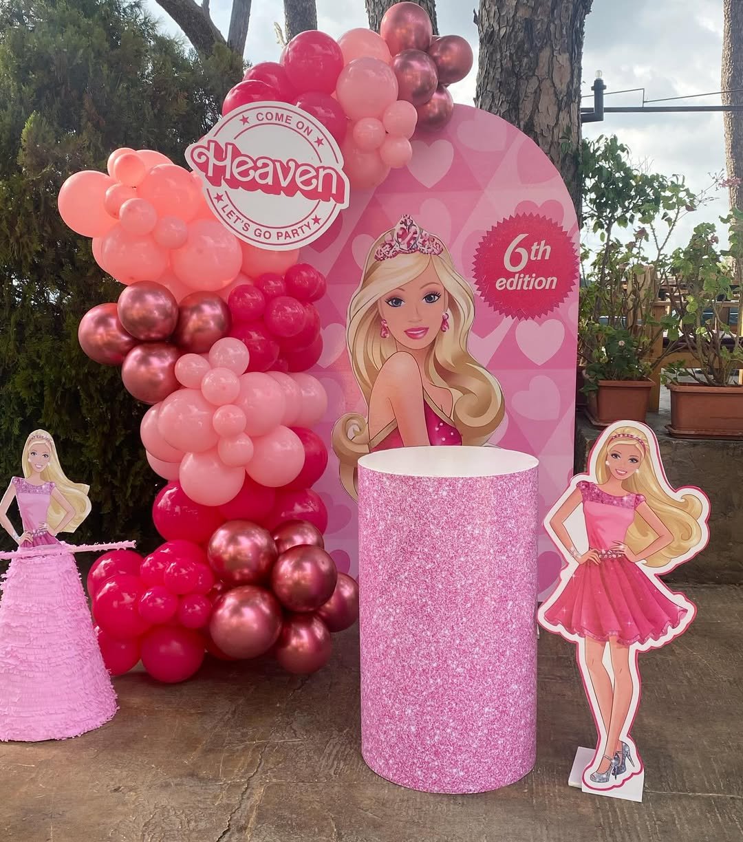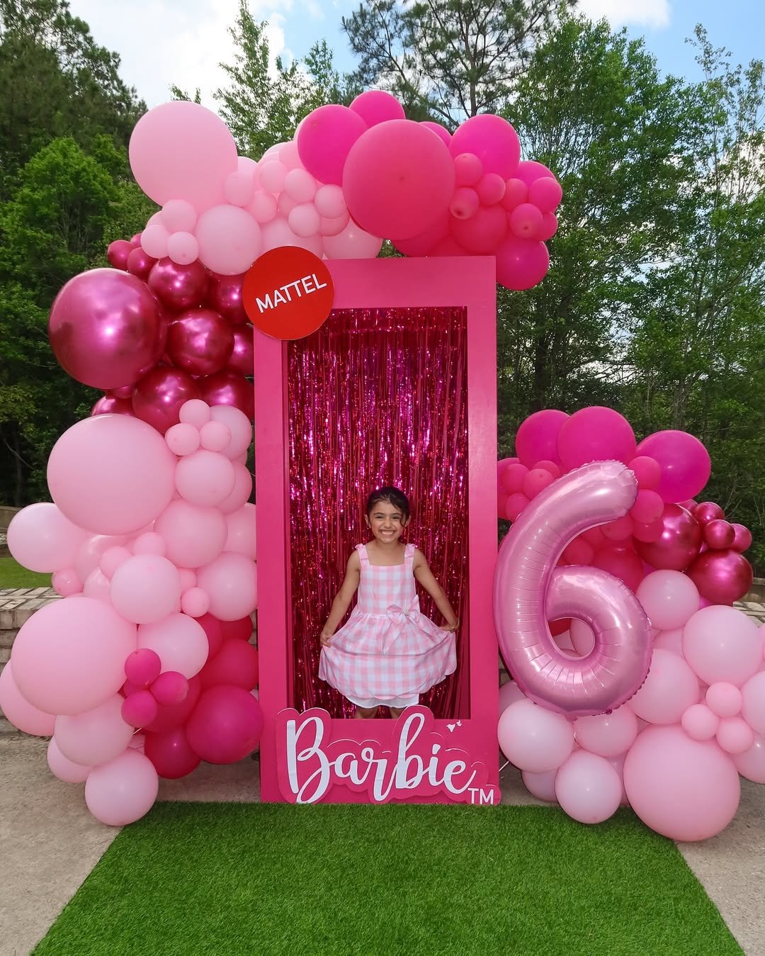 There’s something about stepping into a life-size Barbie box that never gets old. The hot pink frame, metallic fringe backdrop, and that big glossy number 6 balloon create a full photo-moment experience. It’s bright, confident, and completely camera-ready.