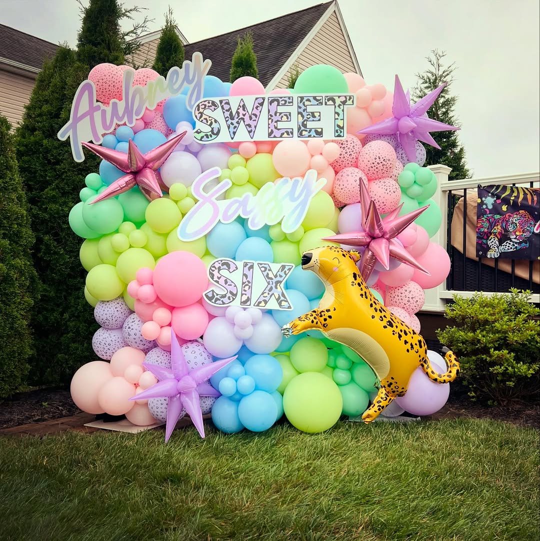 Then there’s the leopard balloon mid-pounce, which gives the whole scene movement and attitude. It’s loud in the best way. High color, high fun, and totally unapologetic, just like turning six should be.