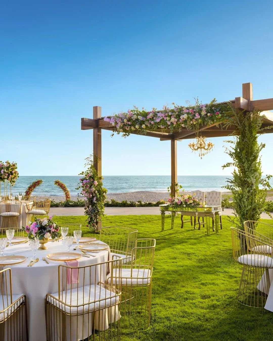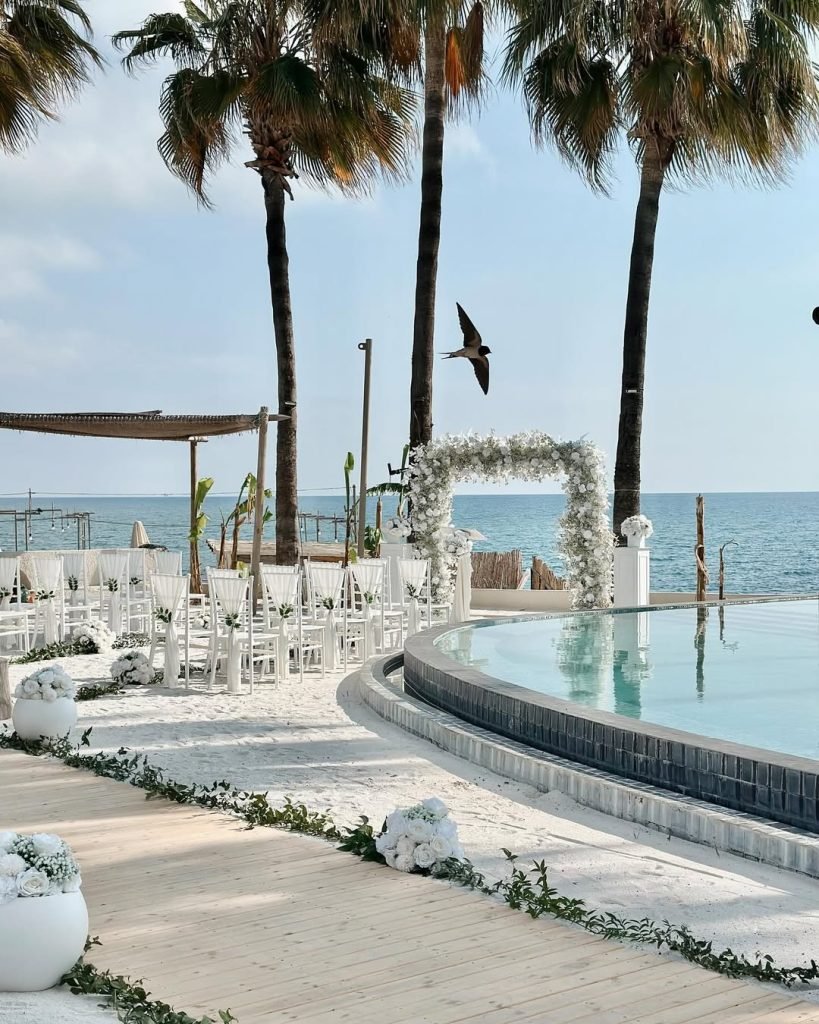 With palm trees swaying and the soft hum of sea breeze, it’s the kind of scene that lingers in your memory long after the “I do.”