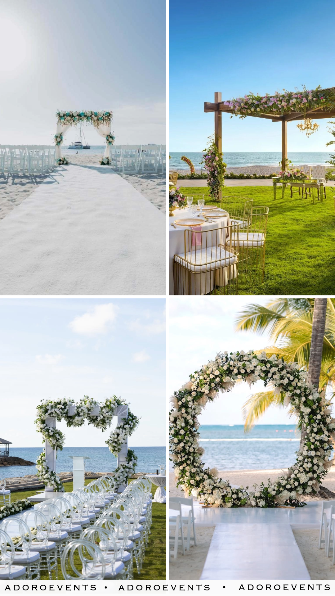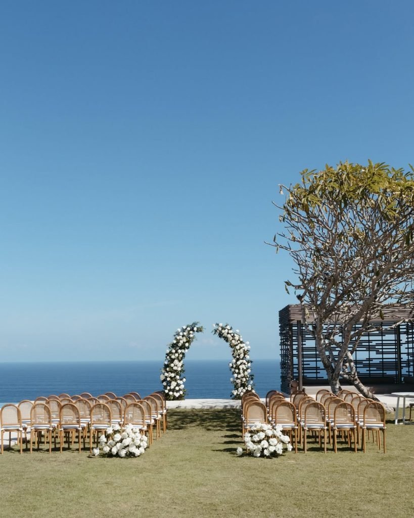 With natural wood chairs and a pristine aisle leading to that perfect turquoise horizon, it’s the kind of setting that feels both effortless and unforgettable.