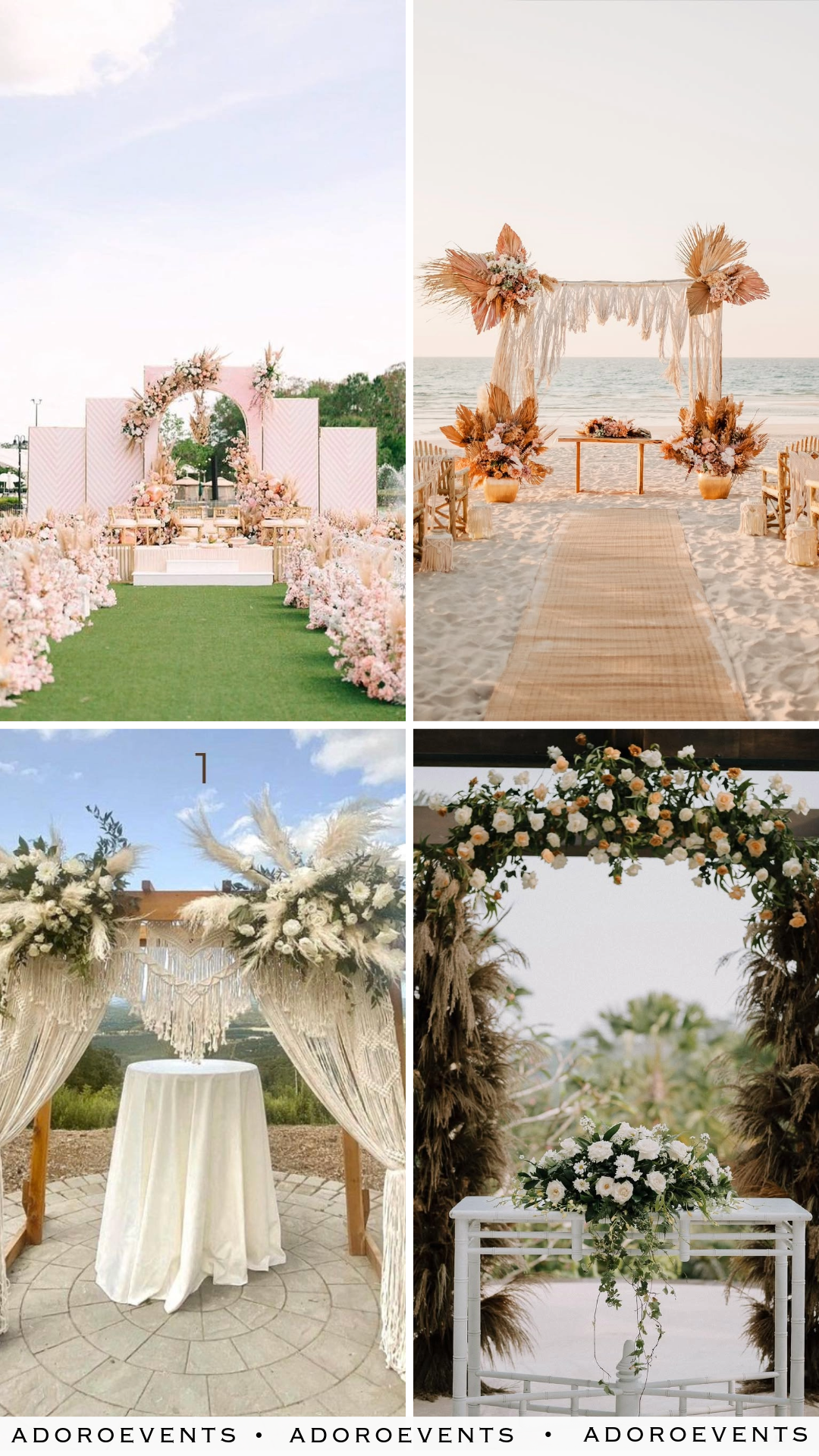 Golden hour kisses the horizon as this dreamy boho altar stands like a mirage in the sand. Styled by @lumibeachuaq, it’s the kind of seaside ceremony that feels effortlessly magical — where every breeze feels like a blessing and every detail tells a love story.