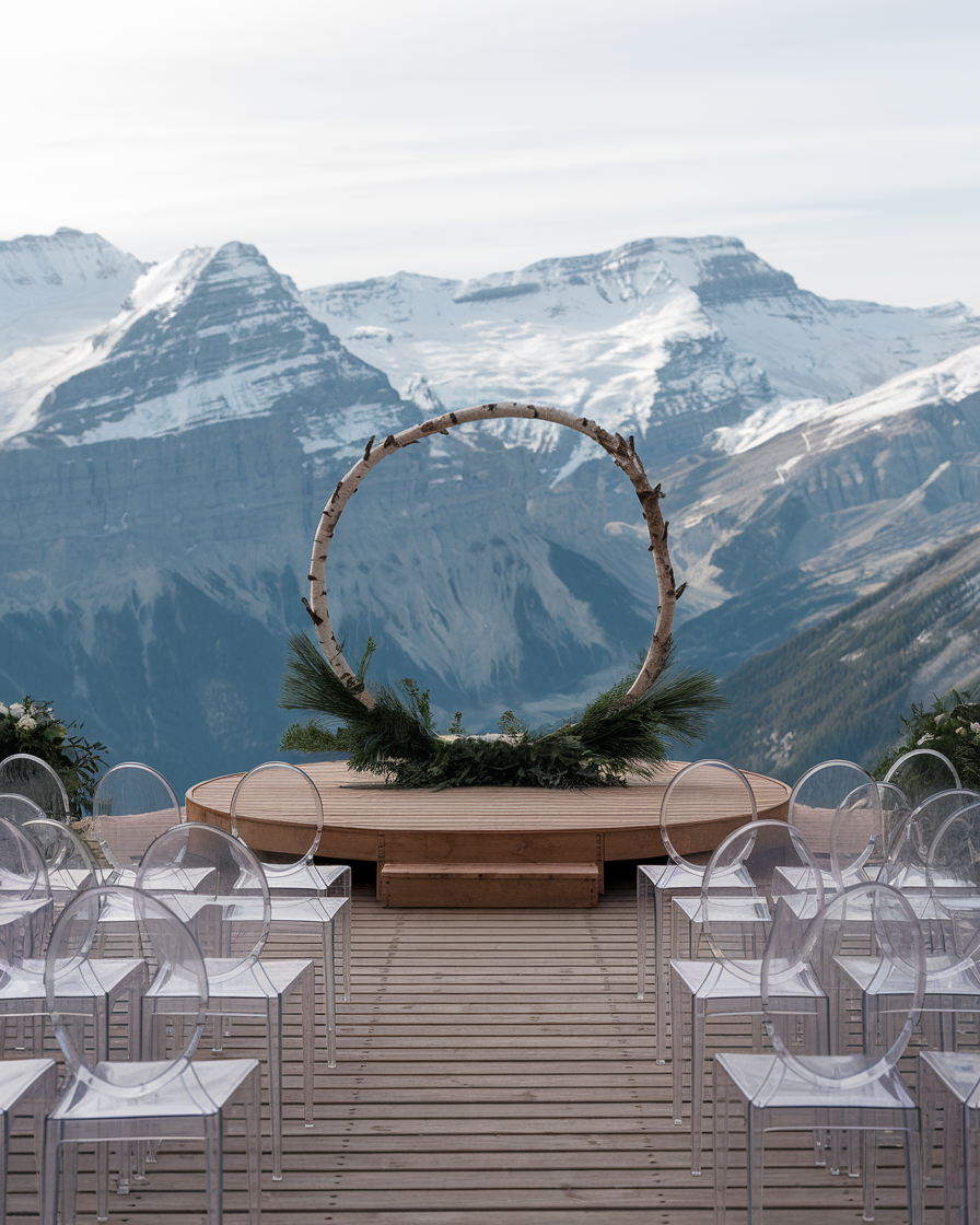 And can we talk about the ghost chairs? Sleek, subtle, and basically floating in the sky — like the mountain version of walking on water. I wouldn’t be mad if my vows had a backdrop more photogenic than me.