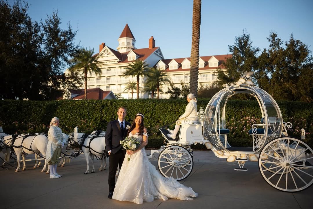 Set against the grand silhouette of the Grand Floridian, every detail whispers of romance and whimsy. It’s the kind of entrance little girls dream about—and this one just came true.