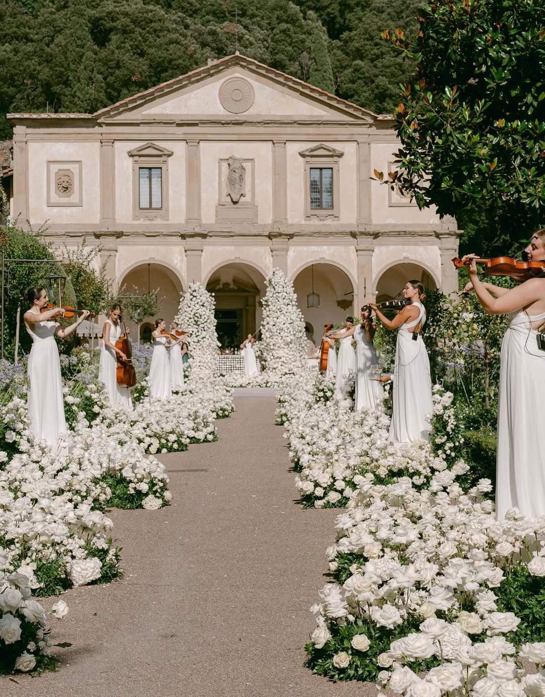 Set against the Tuscan hills, this moment feels sacred and sweeping. It’s the kind of entrance that echoes long after the last note fades.