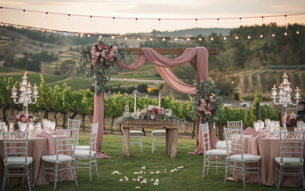 There’s something undeniably magical about a wedding set against rolling vineyards, where golden light kisses the landscape, and love lingers in the air. Vineyard Romance captures that dreamlike essence, blending rustic charm with soft, elegant details for an unforgettable celebration.