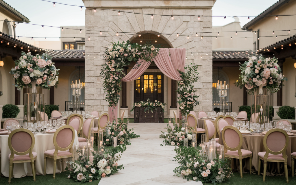 This courtyard wedding is the perfect harmony of classical architecture and botanical splendor—where love is celebrated in the most exquisite of settings.