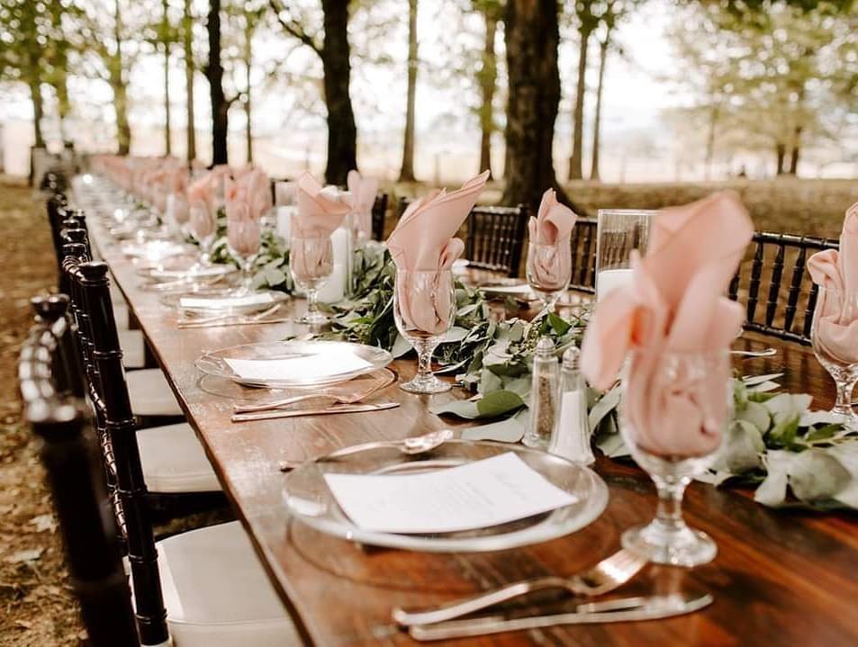 9. Outdoor Farm Table with Blush Napkins