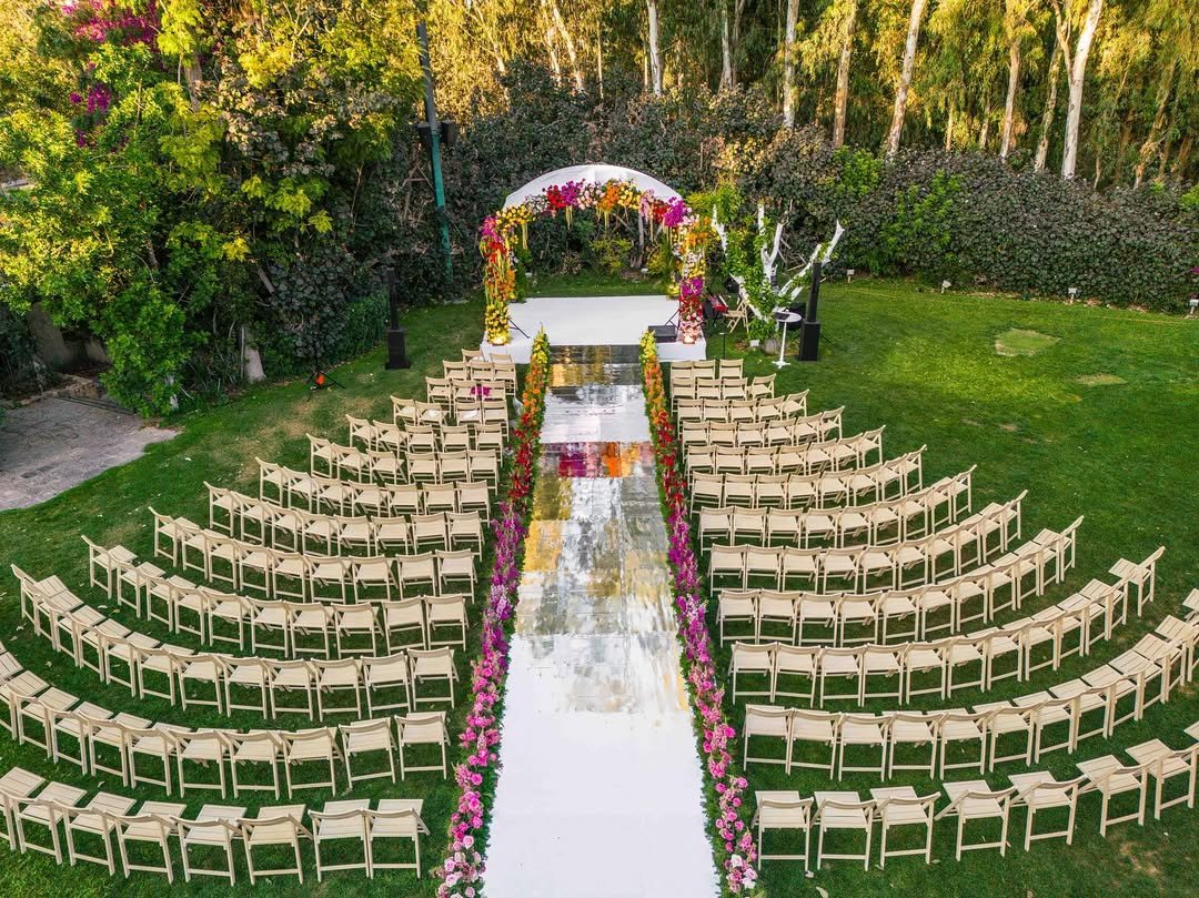 The Wedding Guru’s take? Luxe, theatrical, and a bit otherworldly. And honestly, I’d gladly get lost in this aisle just to soak up that dreamy glow a little longer.