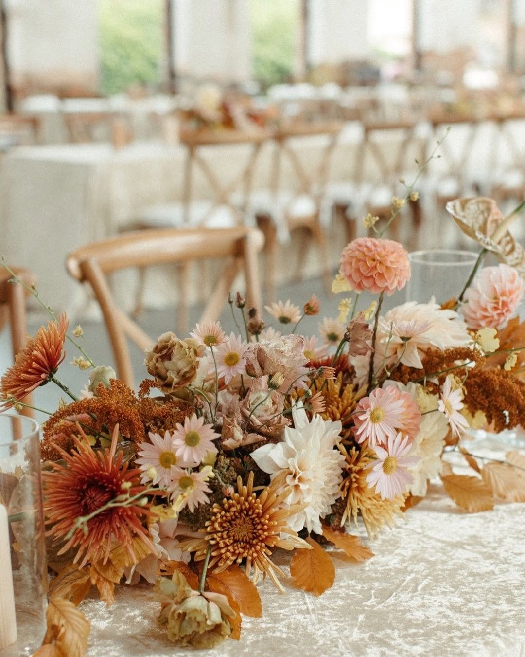 This is the kind of arrangement that brings the magic of fall indoors, but it’s not about being overly rustic. It’s chic, with just enough seasonal warmth to make it the perfect choice for an autumn wedding that’s both intimate and upscale.