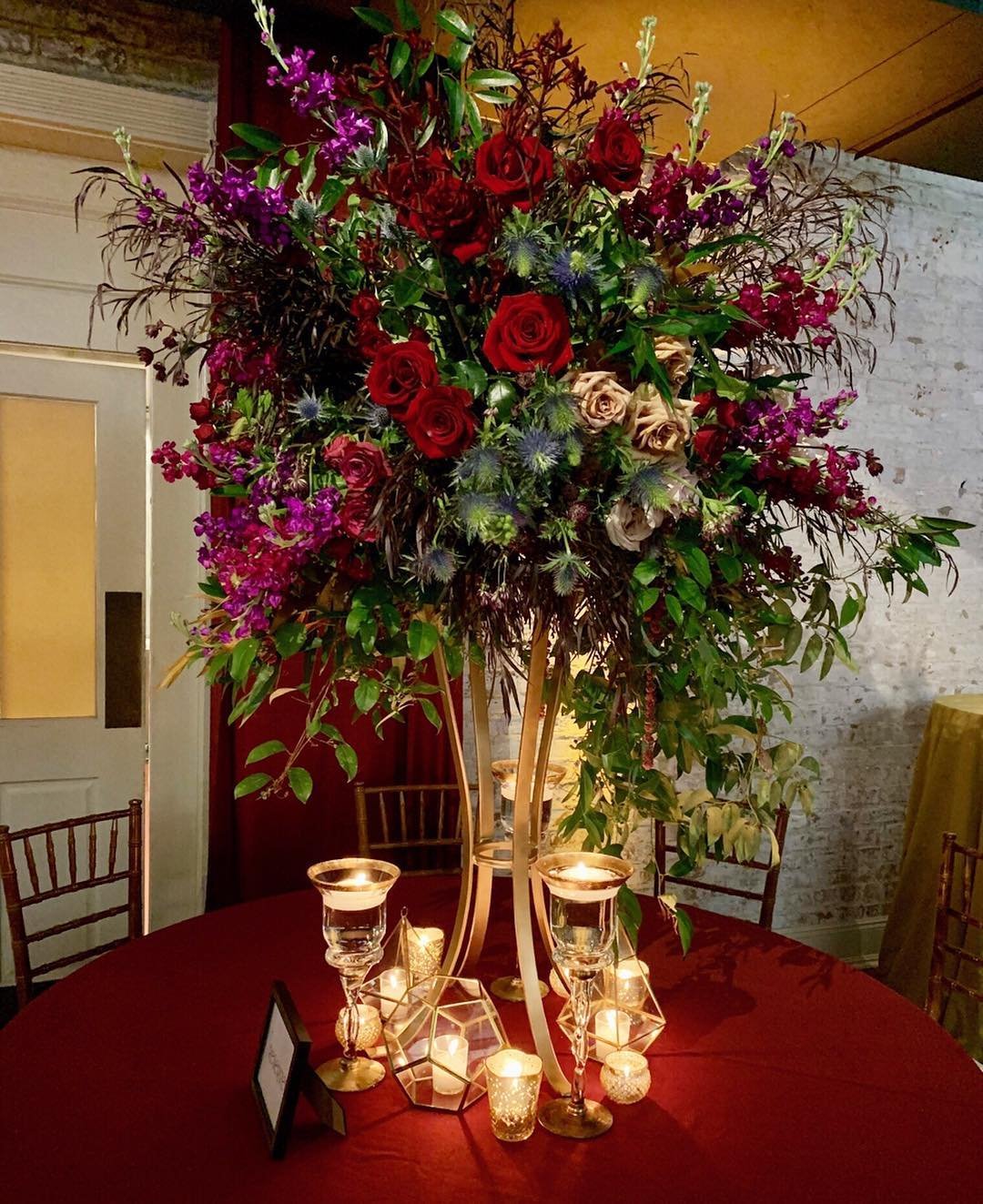 This arrangement makes the space feel so luxurious and lush, without being over-the-top. Perfect for evening or fall weddings where you want to infuse a sense of mystery and opulence into the setting.