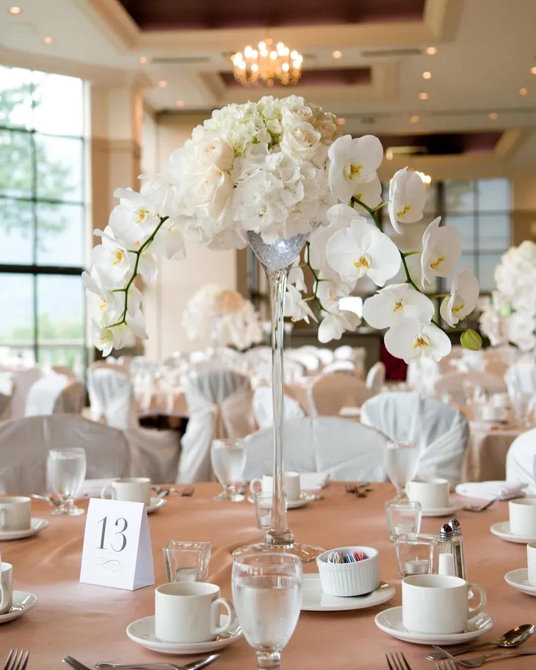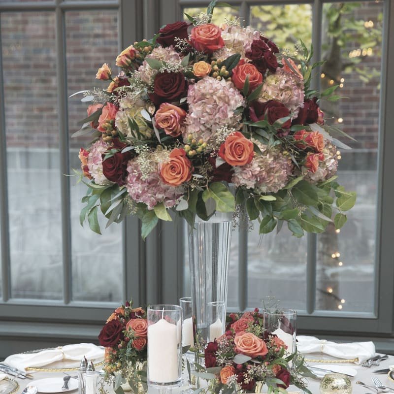 This arrangement is for the couple who wants elegance and romance in equal measure. It brings a dramatic focal point to any room, especially when paired with the clean, sophisticated table settings. It’s regal, timeless, and totally luxurious.