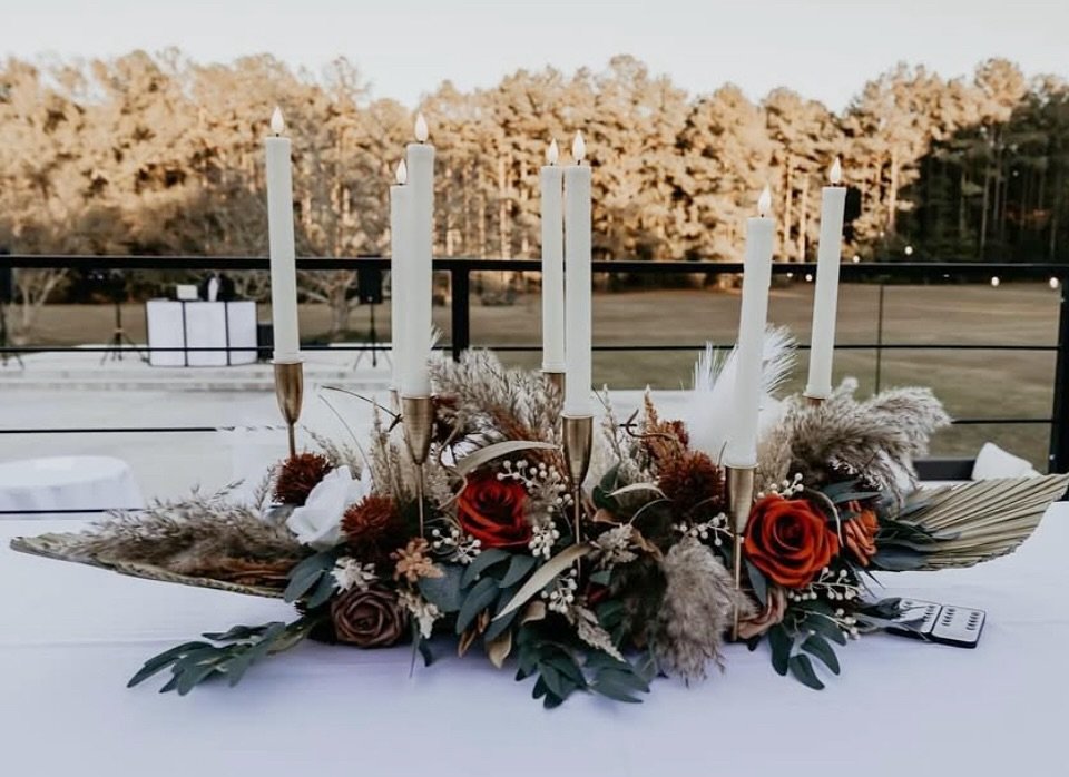It’s the kind of centerpiece that has you wondering if it’s been passed down through generations, bringing an instant touch of class to any event. And when you throw in those soft, twinkling candles surrounding the arrangement? It’s like a fairytale you can touch.