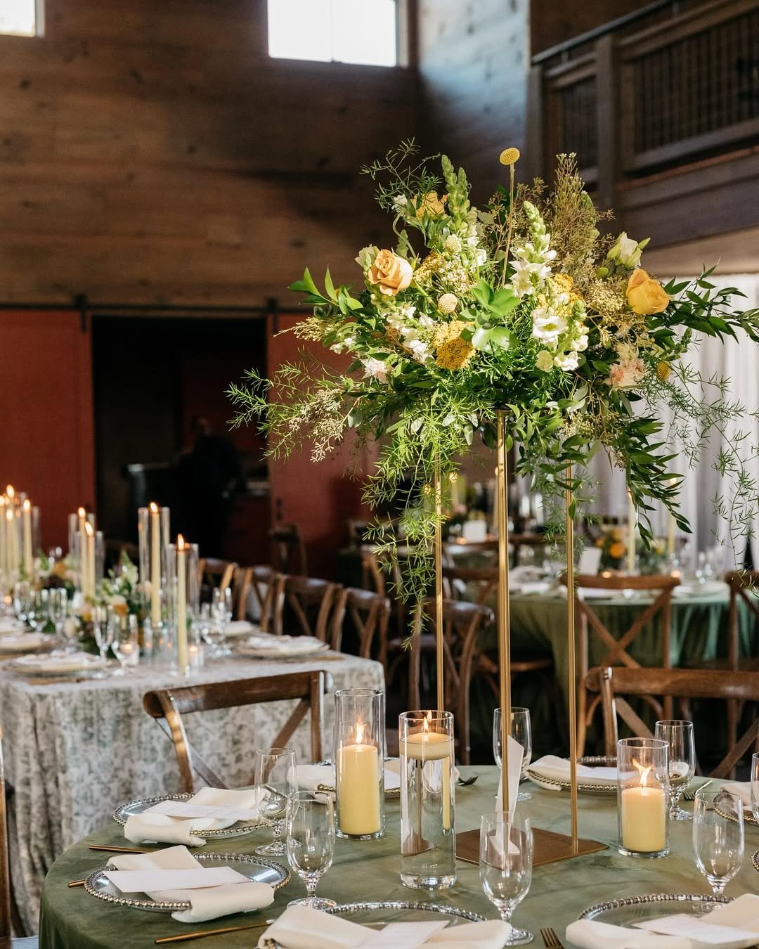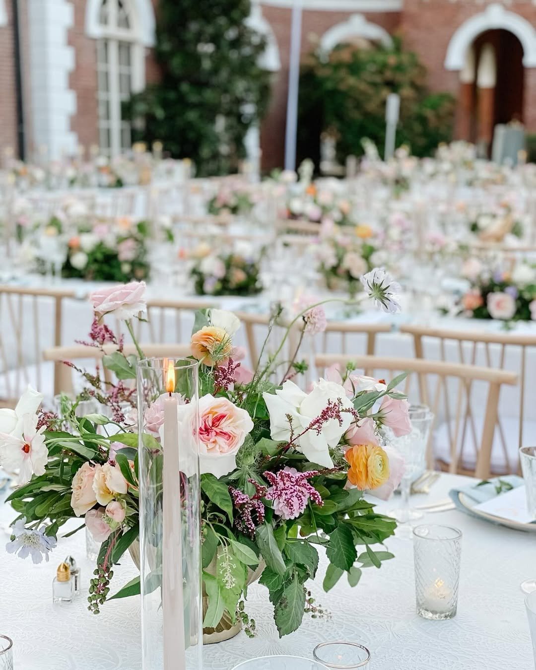 This arrangement screams understated luxury. It’s the kind of centerpiece that’s a little traditional but feels totally modern thanks to its clean, polished aesthetic. Perfect for a wedding where elegance is key but the vibe still feels relaxed and comfortable.