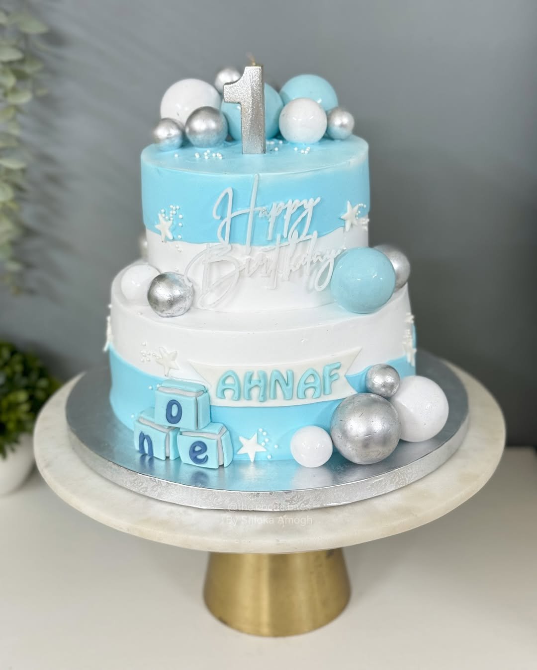 For those who think baby blue is just “cute,” this cake’s here to set the record straight—baby blue can also be bold. The sleek color blocking, metallic spheres, and stacked perfection give it serious “mini VIP” energy.