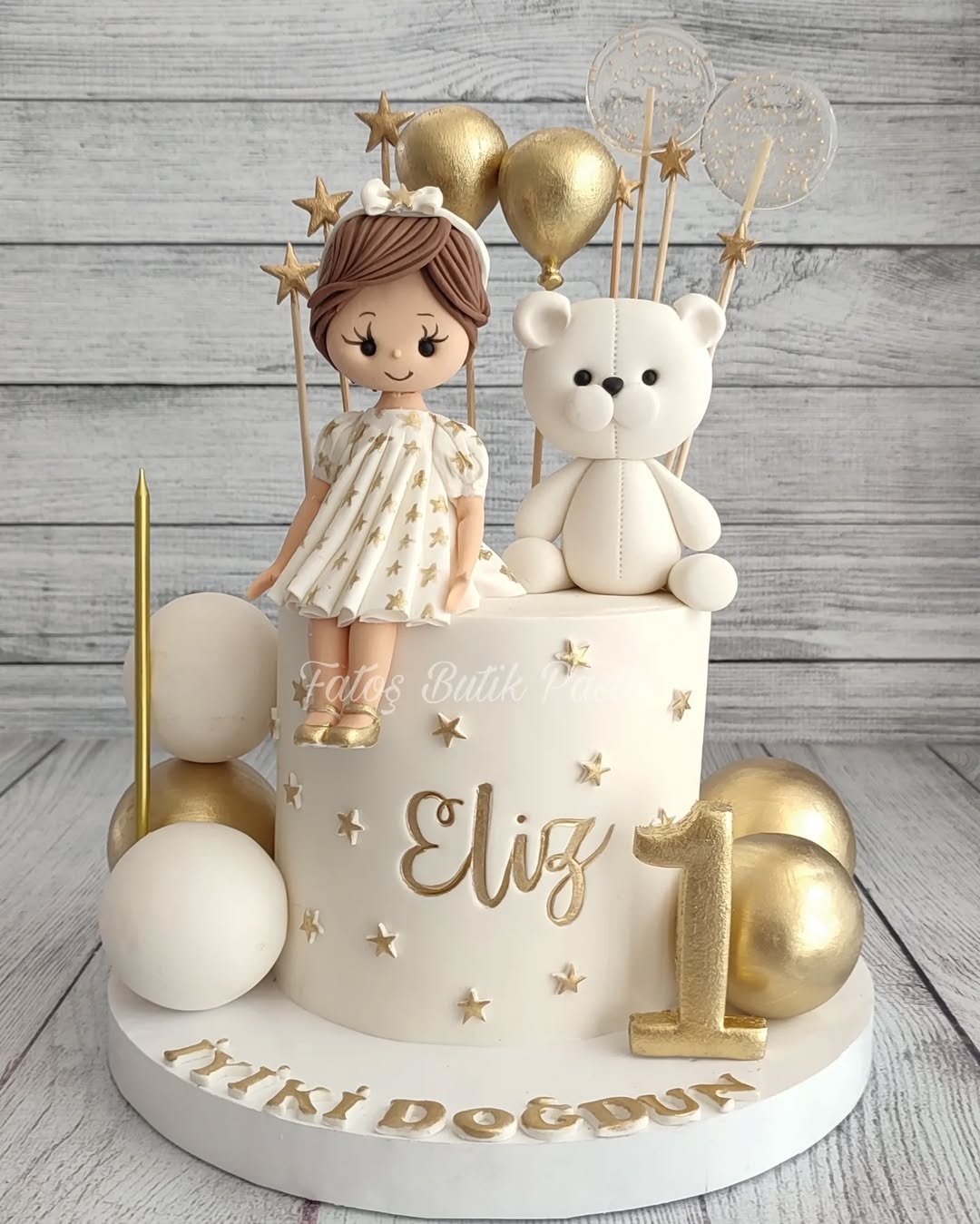 And the gold-speckled balloons? They’re like the cake’s way of saying, “Yes, I’m cute, but I’m also a little extra.” A perfect blend of adorable and party-ready.