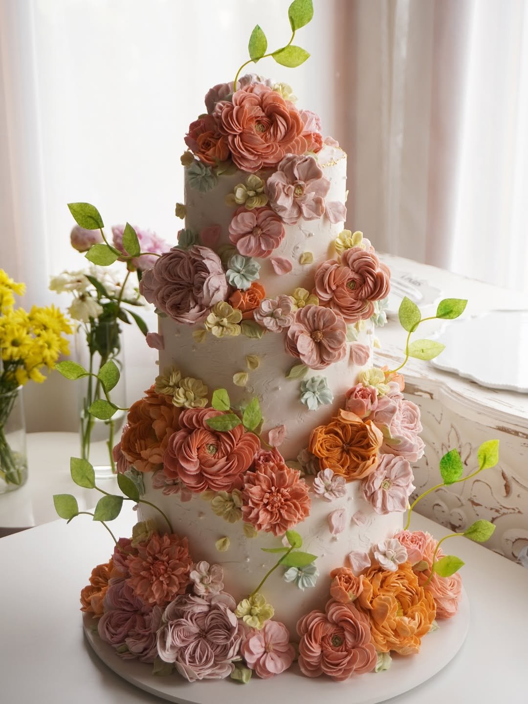 The texture of the buttercream mimics the soft folds of garden petals, giving each flower its moment. It’s exuberant, a little wild, and completely unforgettable—like a celebration wrapped in blooms.