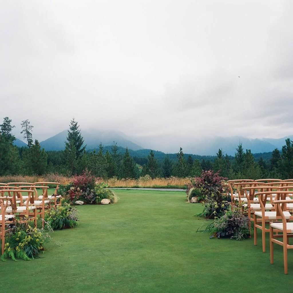 With clouds hanging low and evergreens stretching wide, this ceremony space felt like a serene escape into the wild.