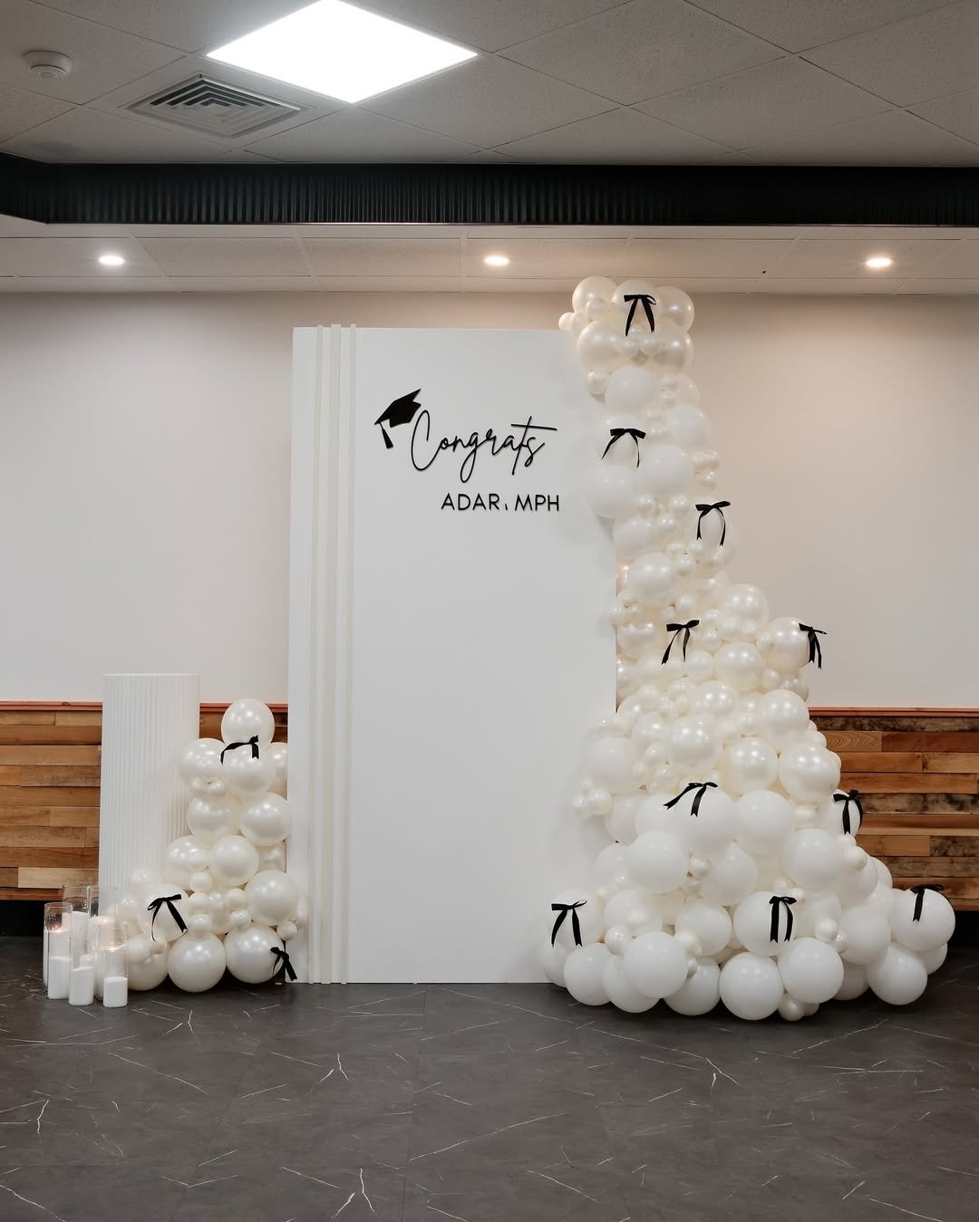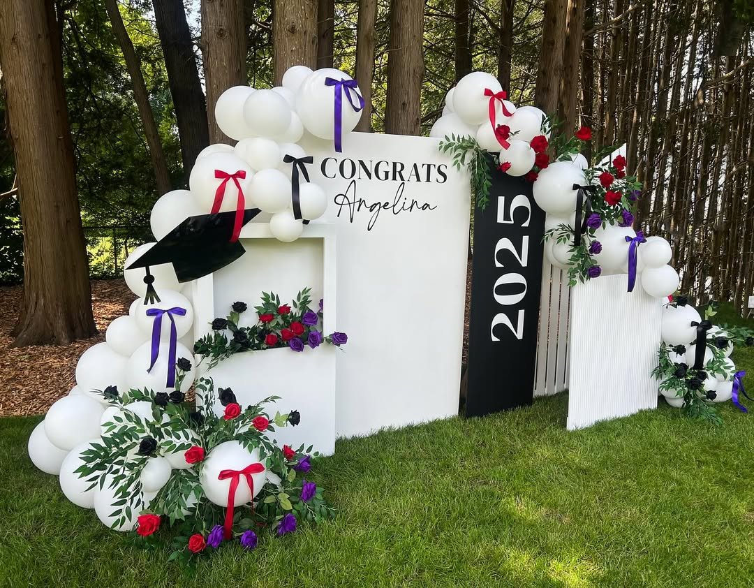 In 2025, graduation backdrops are going off the rails—we’re talking oversized balloon installs, disco balls, neon signs that scream “I did it,” fringe walls in school colors, and setups so photogenic even grandma’s selfies hit different.