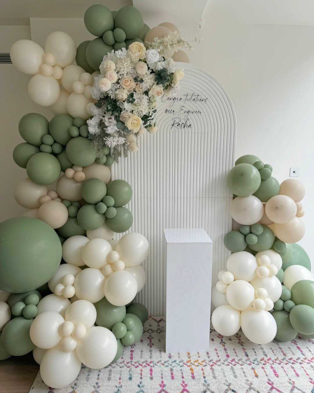 @bebsdecor’s take is dreamy, refined, and beautifully understated. All-white balloons, classic lines, and delicate black ribbons add just the right level of contrast. And those flickering candles? A quiet moment of ambiance that elevates everything.