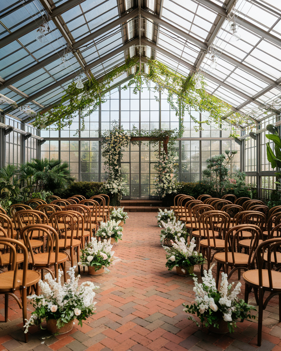 This setup feels like stepping into a garden fairytale where every leaf got the please be perfect memo. I’m obsessed with the way the vines flirt with the ceiling beams, and don’t even get me started on the terracotta floor — that rustic warmth is doing the most without trying too hard. The chairs? Chic. The florals? Fresh-out-of-a-dream. The vibe? A cozy plant parent meets polished editorial moment.