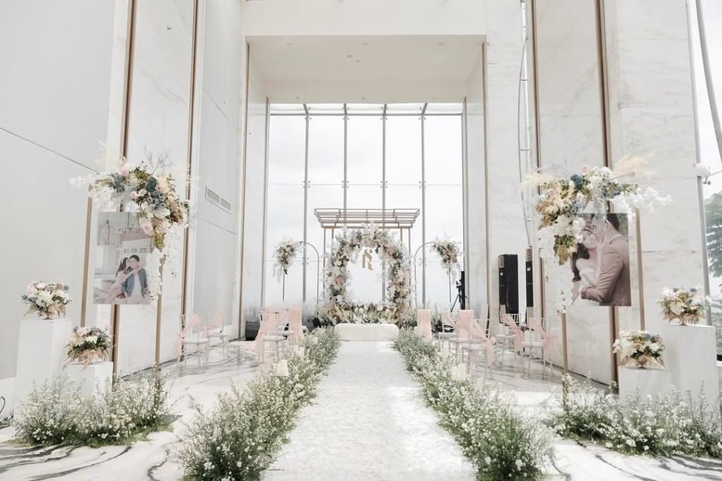 The second I stepped into this space, it felt like walking through the pages of someone’s favorite chapter—tall windows, soft blooms, and that perfect hush before “I do.”