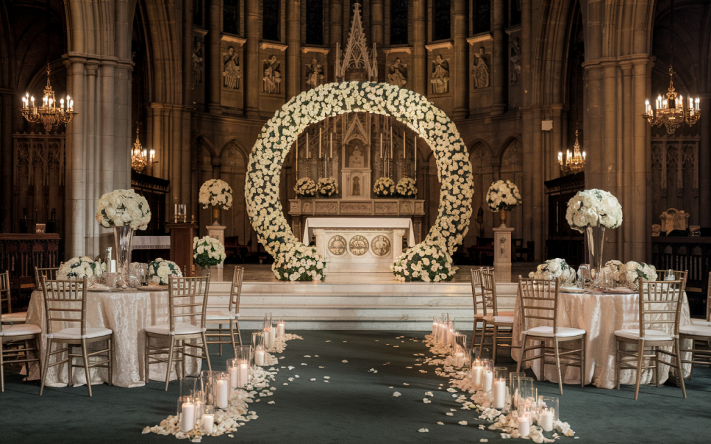 Step into a world where timeless tradition meets modern luxury. This classic wedding setup captures the essence of old money sophistication, blending intricate floral arrangements with subtle elegance to create a refined and intimate atmosphere.