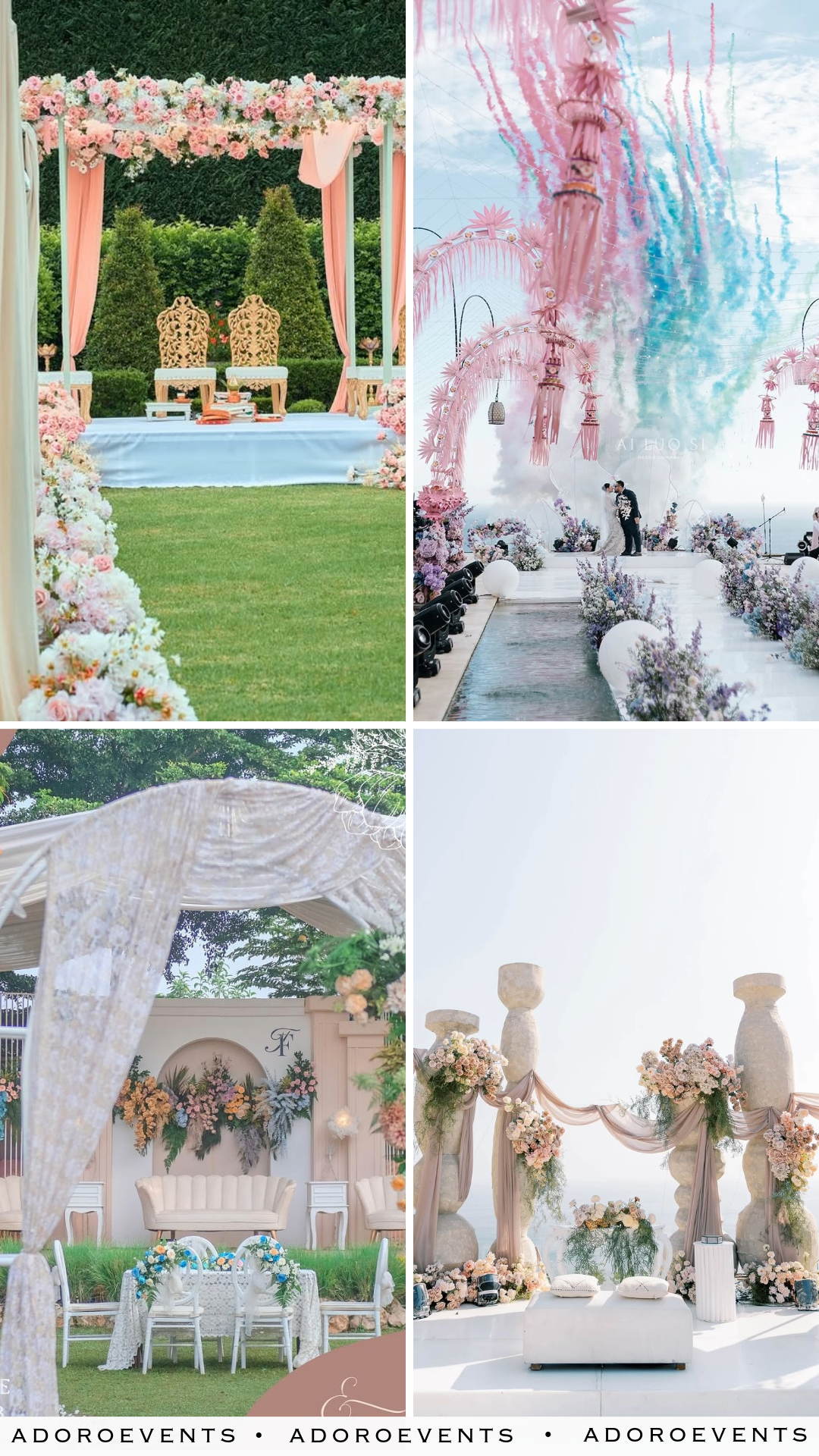Okay, but how magical is this pastel canopy? It’s like stepping inside a cloud spun from sugar and petals—and I mean that in the most glorious way. The delicate peach and teal accents tucked into the abundance of blush, ivory, and golden cream add just the right hit of modern whimsy.