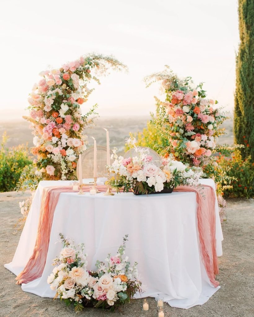 Bathed in golden light and kissed by a canyon breeze — this sweetheart table feels like a scene from a romantic dream.