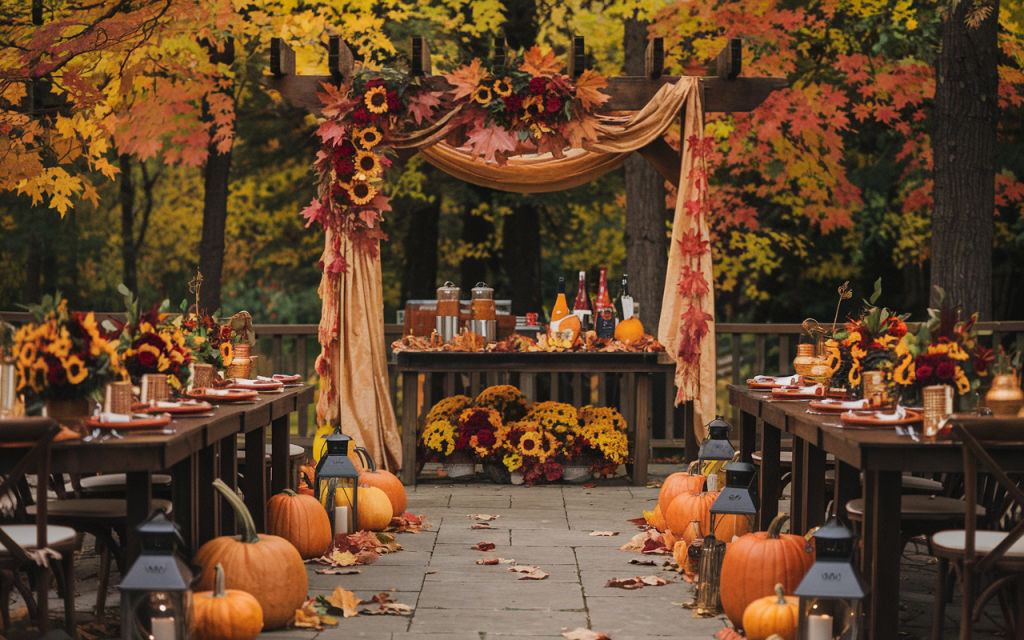 This decor style is perfect for couples seeking a rustic, natural wedding in a barn or countryside venue. Ideal for fall or late summer weddings, it combines warmth and elegance with a relaxed atmosphere. This setup is perfect for couples who want a charming, intimate ceremony that highlights the beauty of nature and rustic details.
