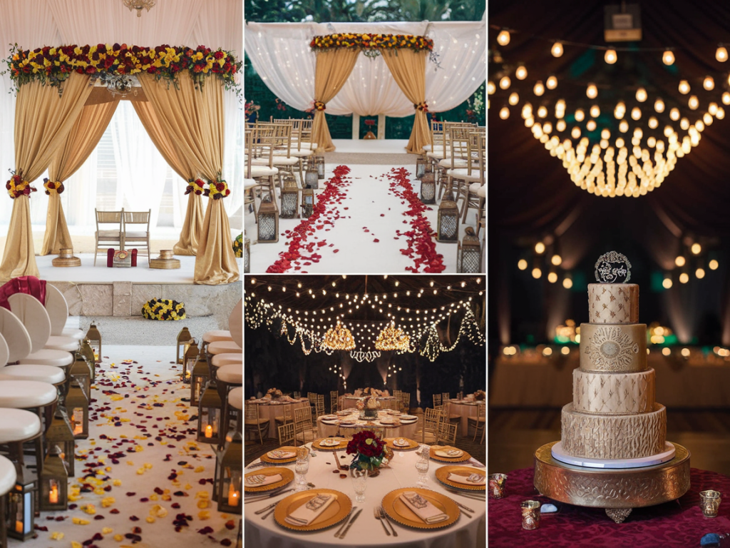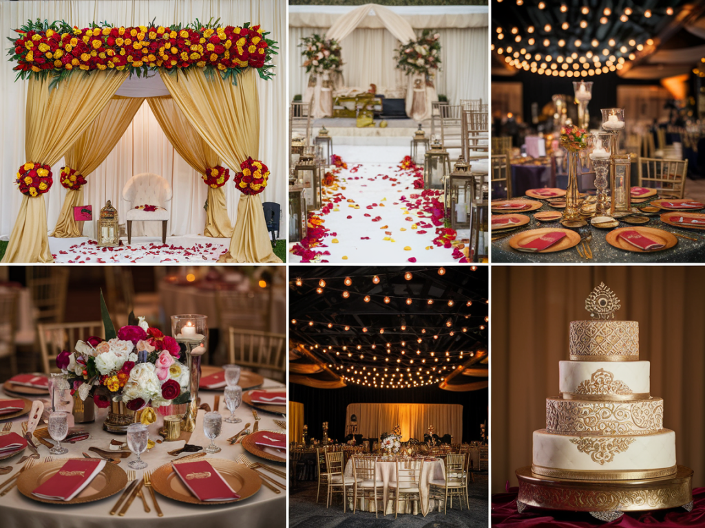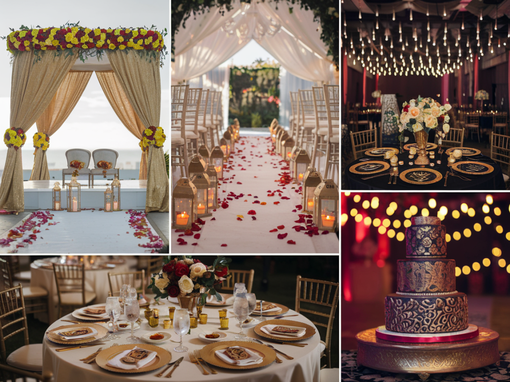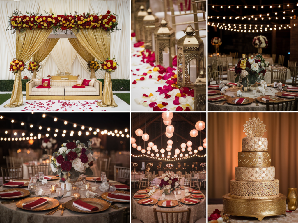 This decor is perfect for couples who want a vibrant, traditional wedding. It suits large venues that can accommodate bold colors and grand floral arrangements, making it ideal for a lively celebration with close family and friends. The color palette and lavish floral displays would fit perfectly in a venue that can host a festive, joyful atmosphere.