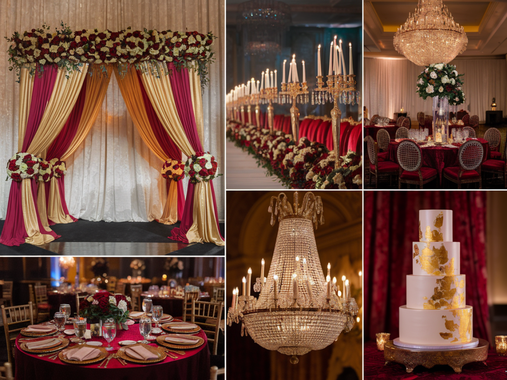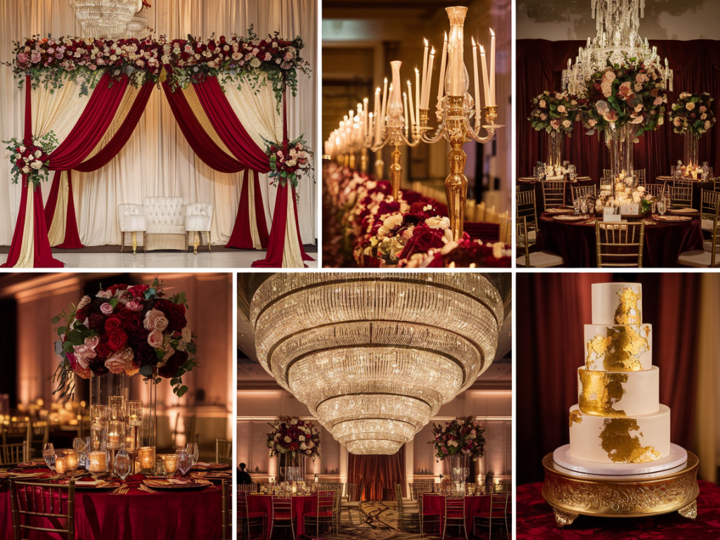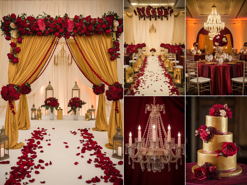 This decor is perfect for couples who want to create a bold and luxurious wedding. It is ideal for upscale venues with ballroom settings, where the elegant lighting and grandeur can be fully appreciated. This setup is perfect for evening celebrations, where the combination of vibrant colors and gold accents creates a sophisticated and romantic ambiance.
