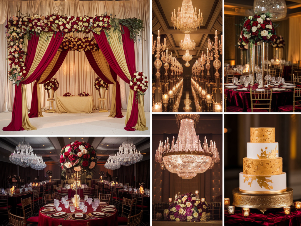 This decor is ideal for couples seeking a luxurious, vibrant, and sophisticated wedding. Perfect for large ballroom venues, it creates a glamorous and romantic setting for evening celebrations. The bold colors and grand chandeliers work in harmony to set the tone for a memorable, high-class wedding event.
