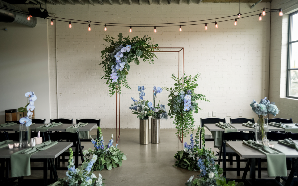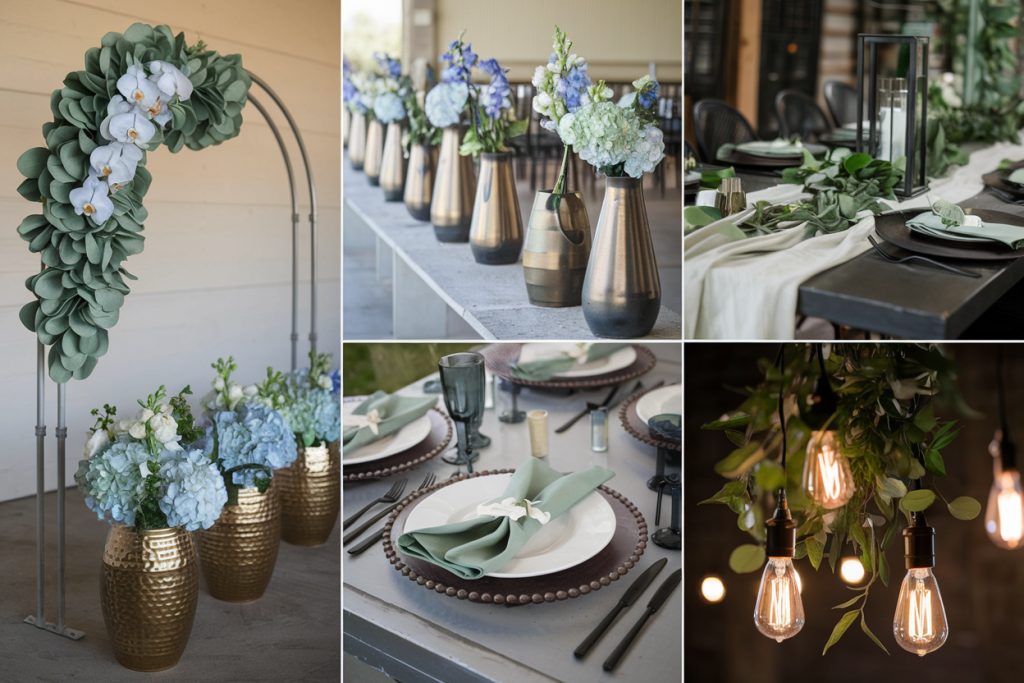 These colors work beautifully across all wedding details, from floral arrangements to bridal party attire. Pinterest trends reveal a growing interest in sage green and dusty blue weddings, with searches skyrocketing by over 150%. Their versatility allows you to create a look that’s both understated and unforgettable.