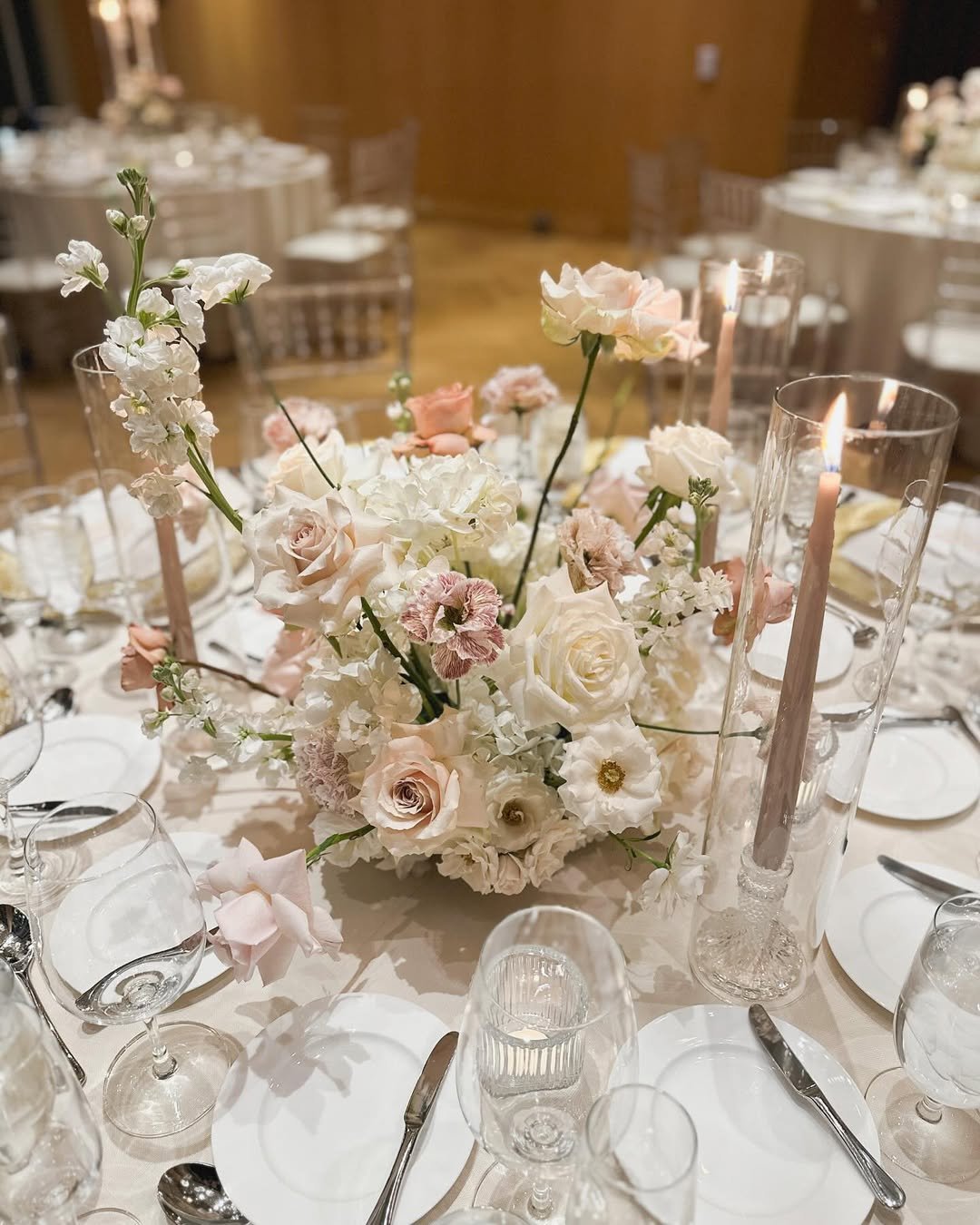 Spring tables deserve a little magic in the middle. With lush florals, delicate greenery, and soft candlelight, centerpieces become the heartbeat of your celebration — tying every place setting together with beauty and bloom.