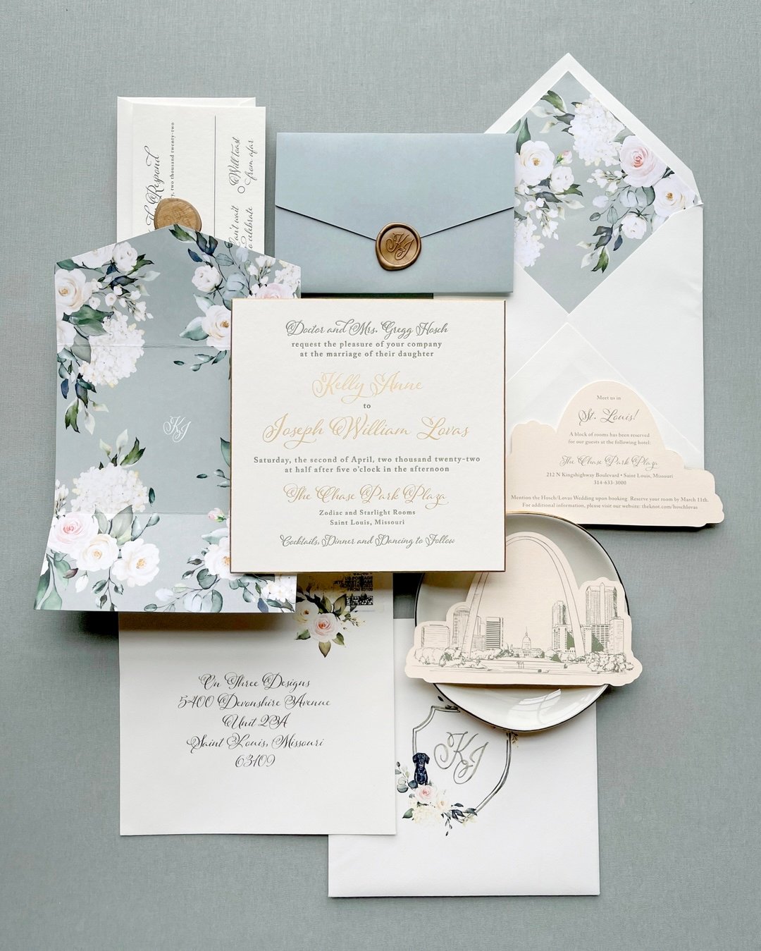 From the scalloped inserts to the delicate typeface, every detail speaks to formality with a whisper of femininity. And the skyline illustration? A love note to St. Louis that ties it all together.