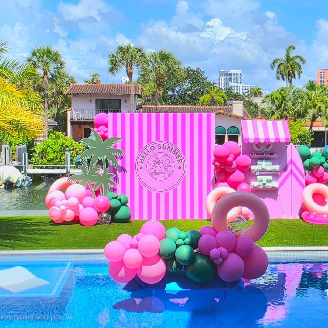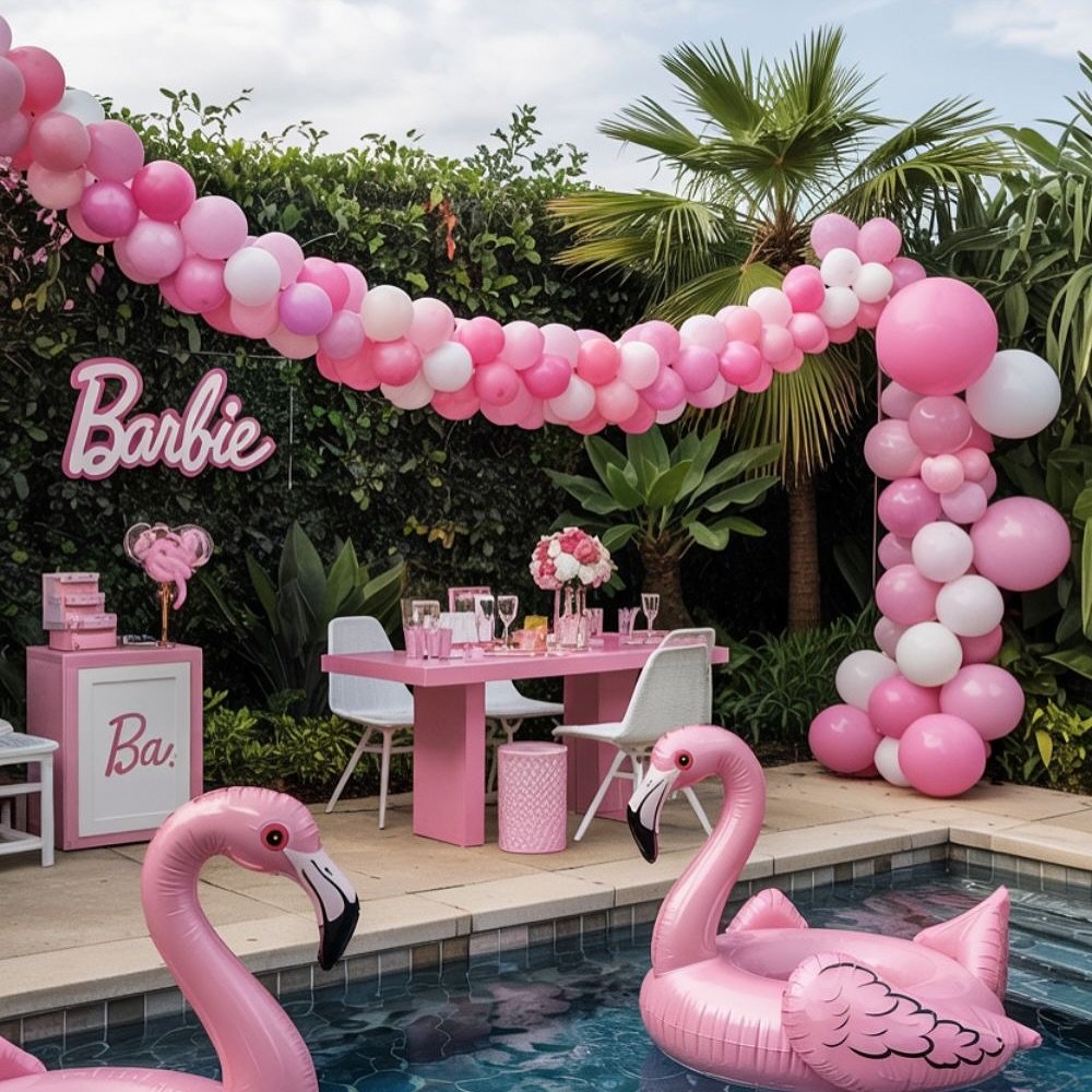 This one’s a dream in pink. @iselhms.cindychaves.realestate pulled out all the stops with a Barbie-inspired bash: blush balloon garlands, flamingo floaties, and a punchy pink dining set made for poolside cake and clinks.