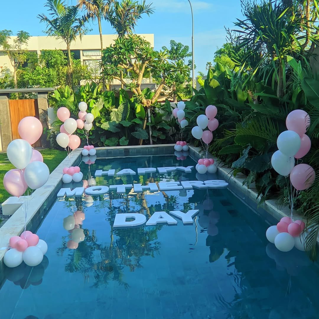 Soft, floating balloons. Blush pink tones. A shimmering pool reflecting “Happy Mother’s Day” in white letters. @balloons_kita strikes again with an ultra-serene setup that feels tailor-made for a slow morning celebration.