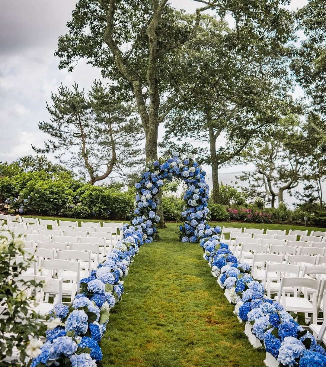 I didn’t know an aisle could feel like a breeze off the water until I saw this one. Those hydrangeas? Peak summer romance.