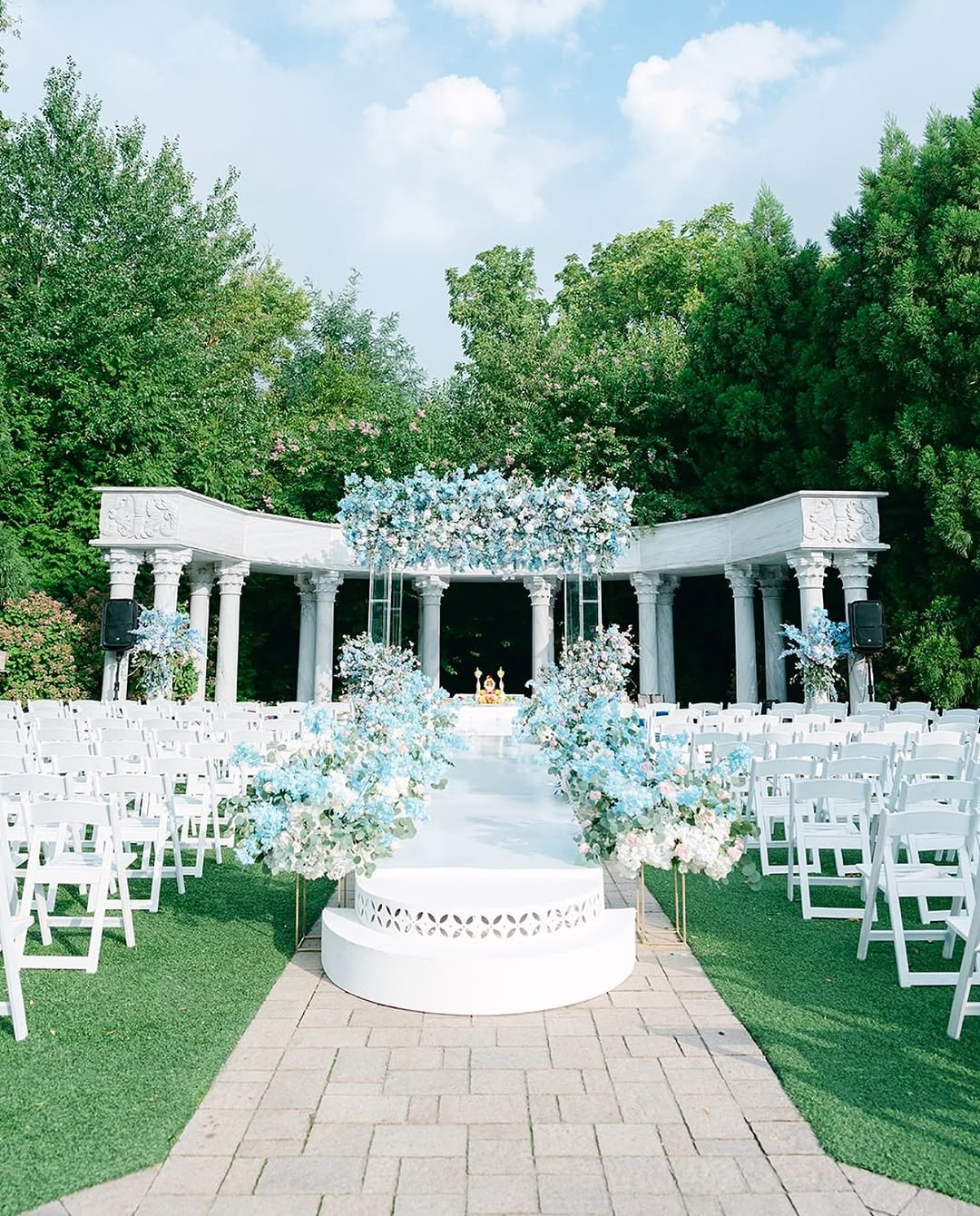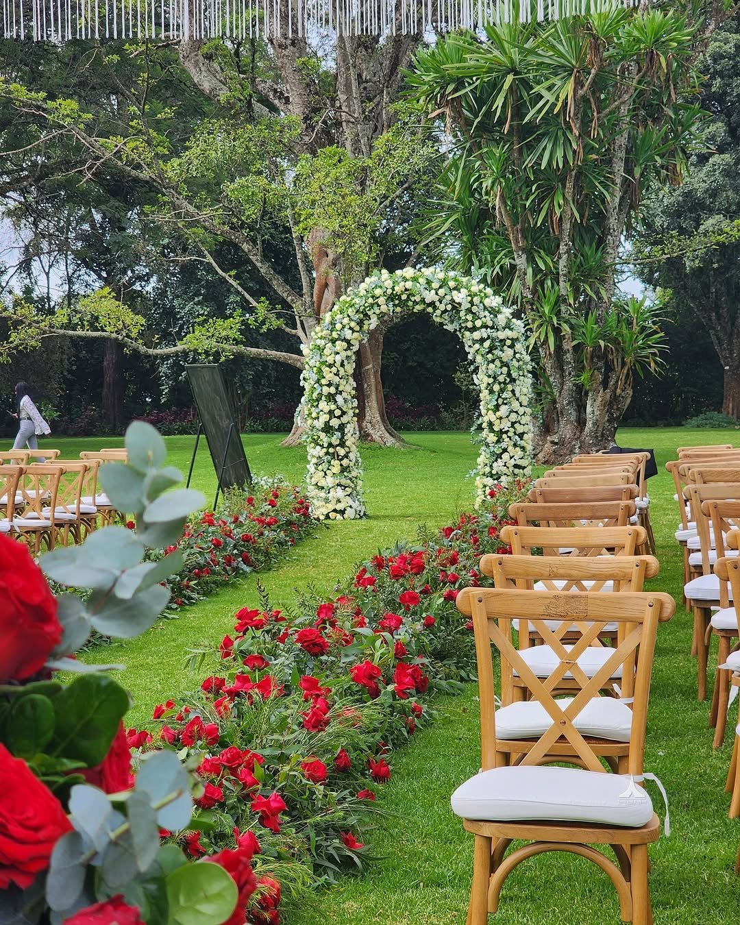 The floral arch felt classic, the chairs were unfussy, and the whole thing had this lush but low-key charm I couldn’t stop staring at.