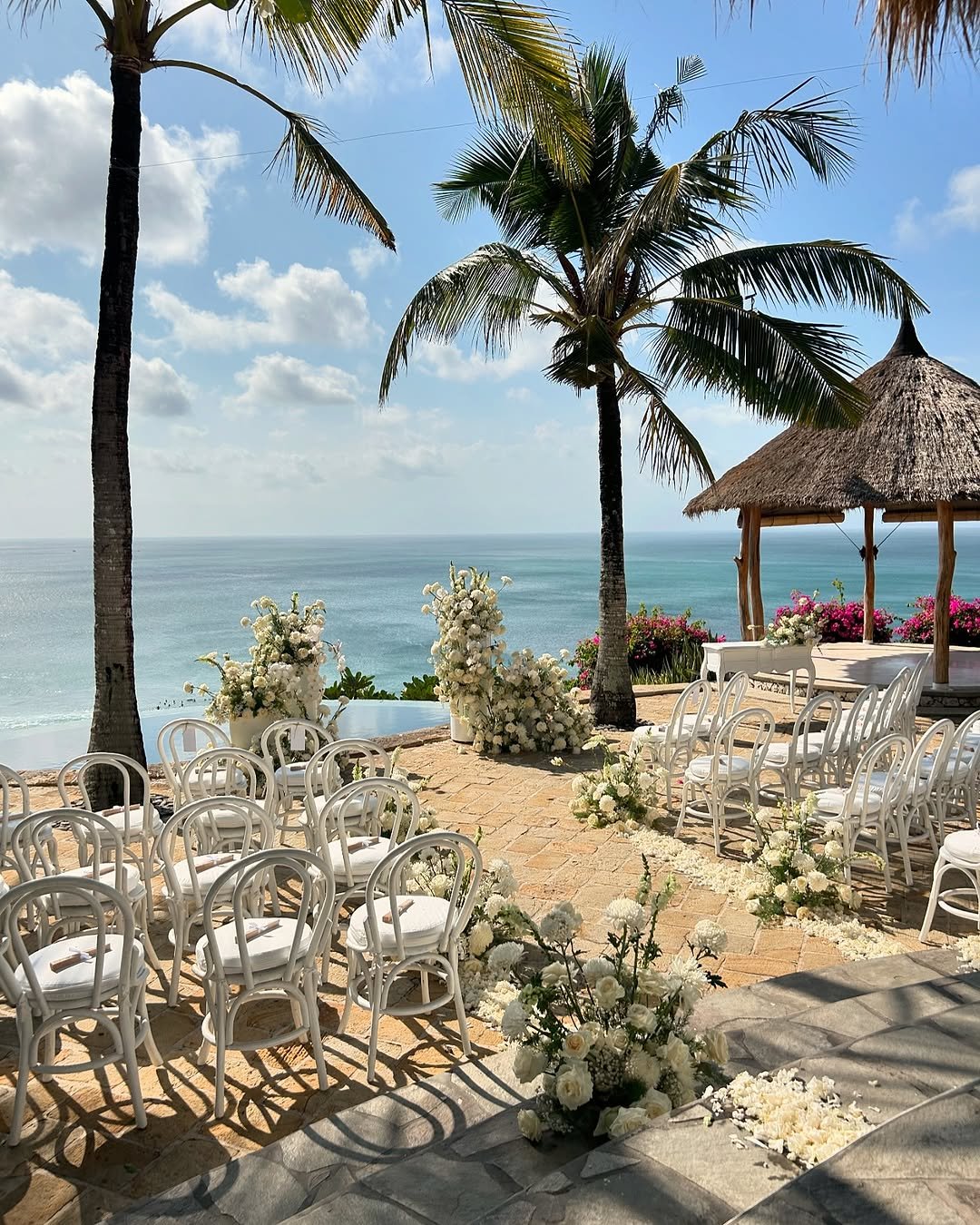 The florals were subtle but stunning, scattered just enough to feel effortless. And @natafloristbali knew exactly when to stop—letting that ocean do half the talking.