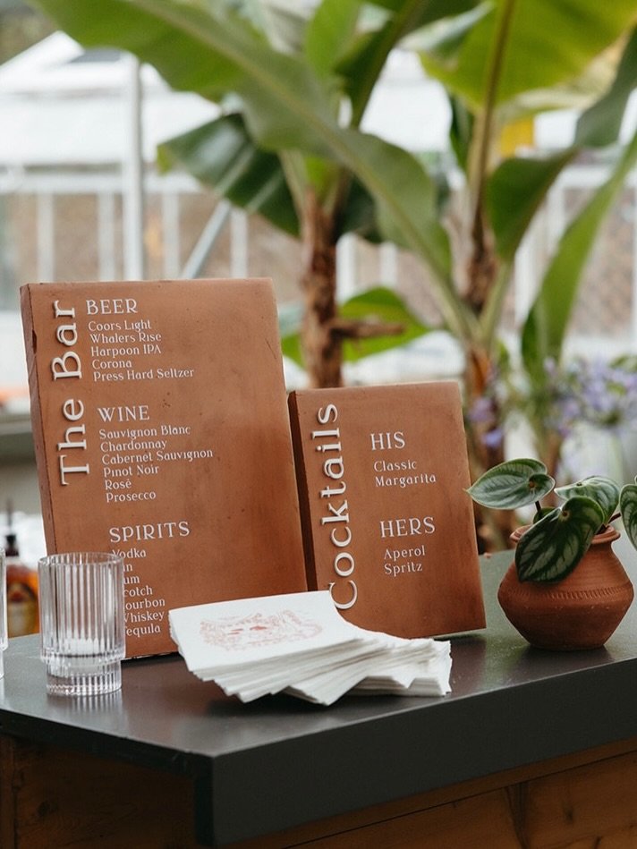 Terracotta signage doesn’t just guide your guests — it sets the tone with sun-kissed charm and desert-inspired flair. From welcome signs to seating charts, every piece adds a touch of warmth and modern rustic soul.