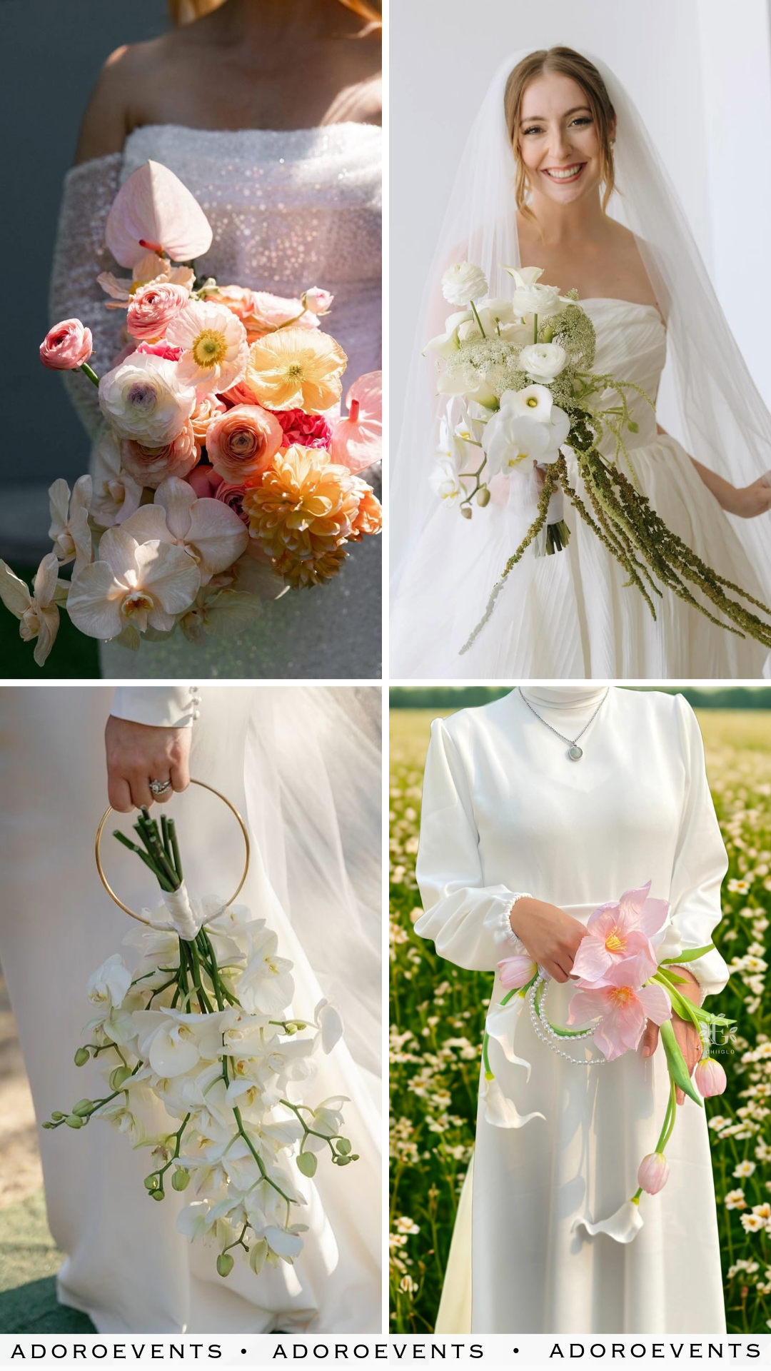 From monochrome petal perfection to vibrant jewel-toned mixes, each concept below offers something different. Let’s dive into the bouquet that feels like you.