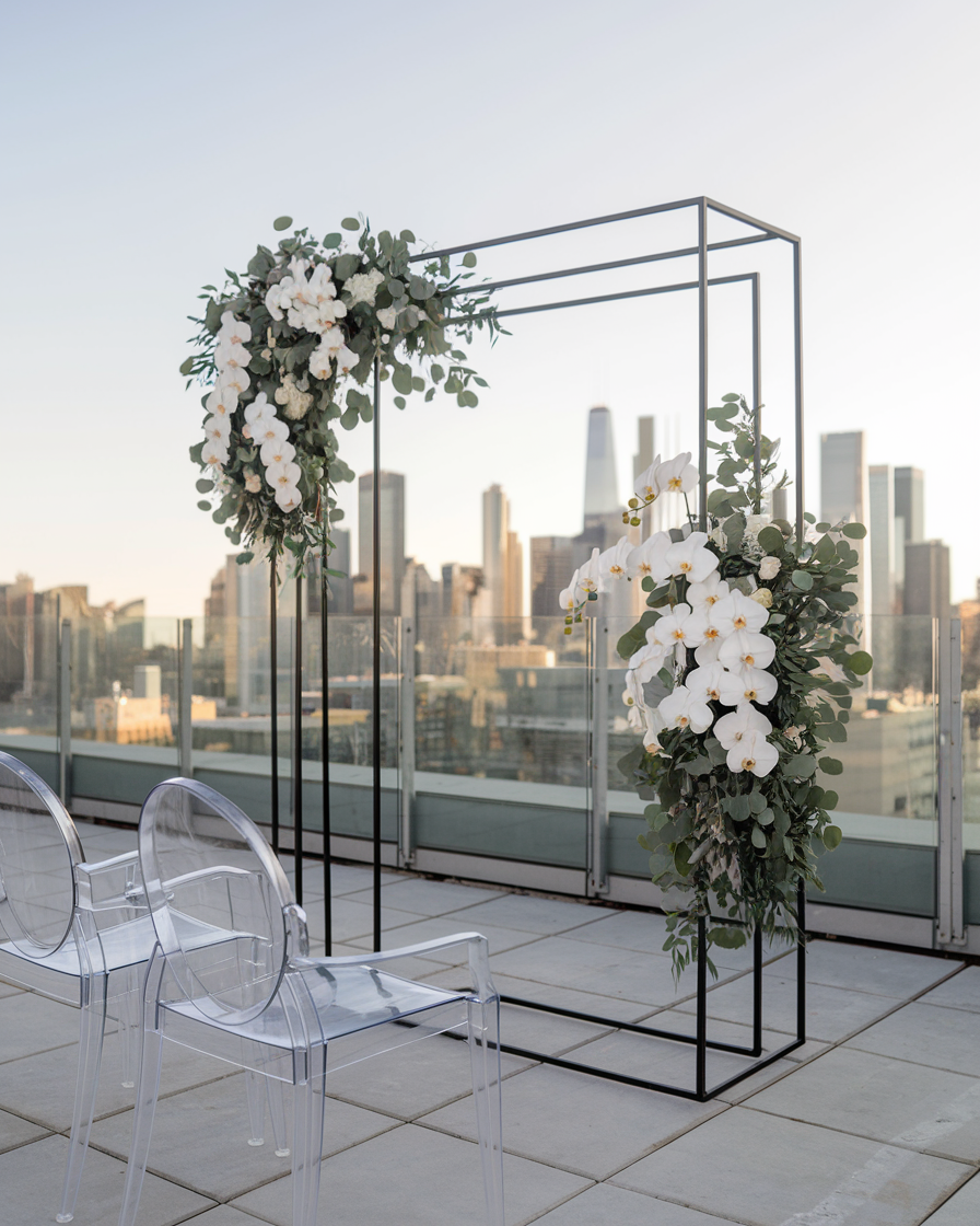 And those ghost chairs? Chef’s kiss. They don’t compete — they just let the arch and that golden-hour city glow do all the talking. If I were planning a rooftop “I do” in the heart of the city, this would be the look: clean lines, clear views, and just enough softness to say “forever.”