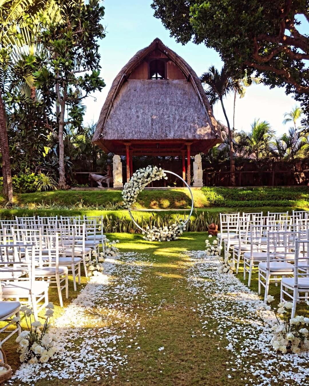 There’s something about a circular arch that always gets me. Maybe it’s the symbolism (infinite love, anyone?) or maybe it’s just how effortlessly elegant it looks against the lush Balinese backdrop. Either way, this one — beautifully styled by @baliweddinghoneymoon — totally swept me away.