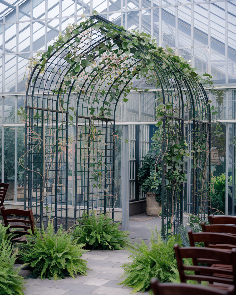 I’ll admit it — I have a thing for greenhouse romance. And this wrought-iron arch draped in winding vines? It’s like something straight out of The Secret Garden — if the secret were that it doubles as the dreamiest ceremony backdrop.