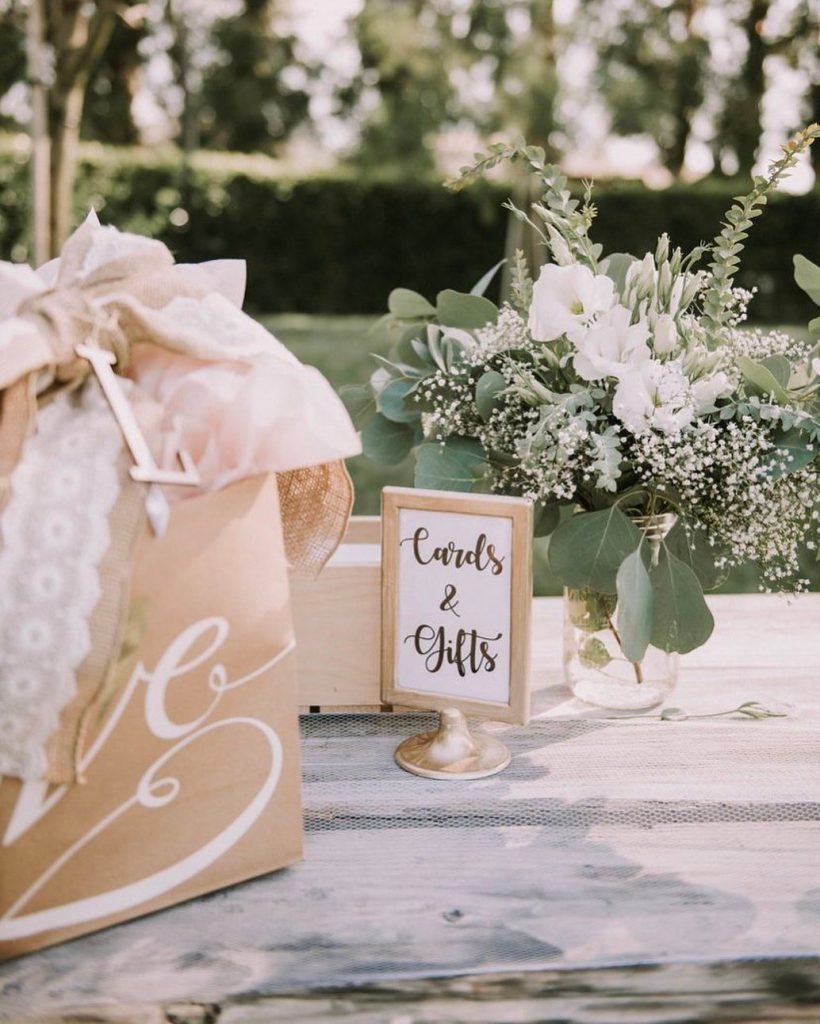 Nestled on weathered wood and kissed by dappled light, this cards & gifts station was equal parts sentimental and sweet.