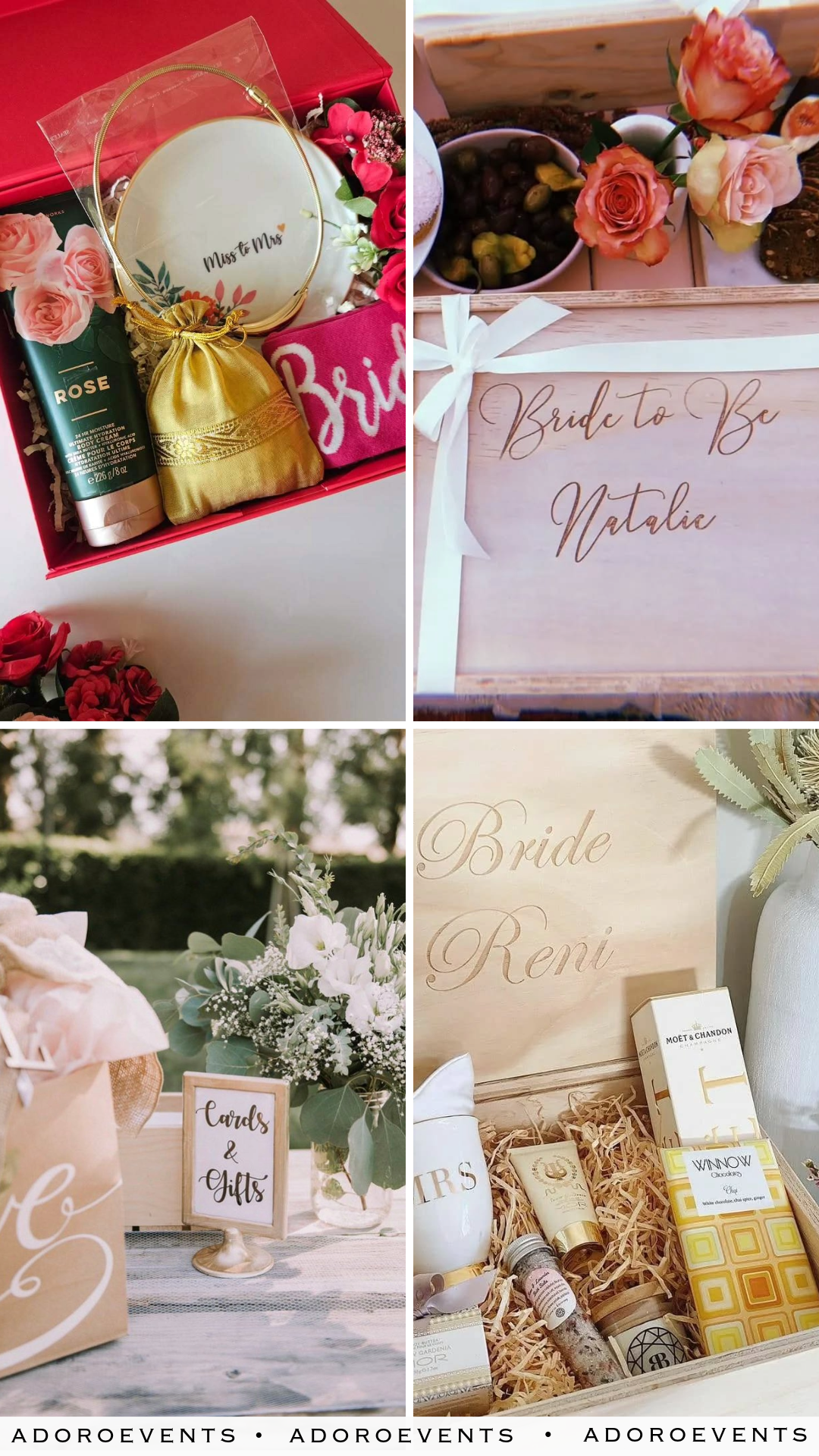 I’m swooning over this thoughtful gift box from @sassy_square — it’s like a little treasure chest for the bride-to-be. Between the personalized travel tags, cozy coffee jar, luxe body care, and sweet Ferrero Rocher treats, it’s everything she needs for a dreamy “me moment” before the big day.