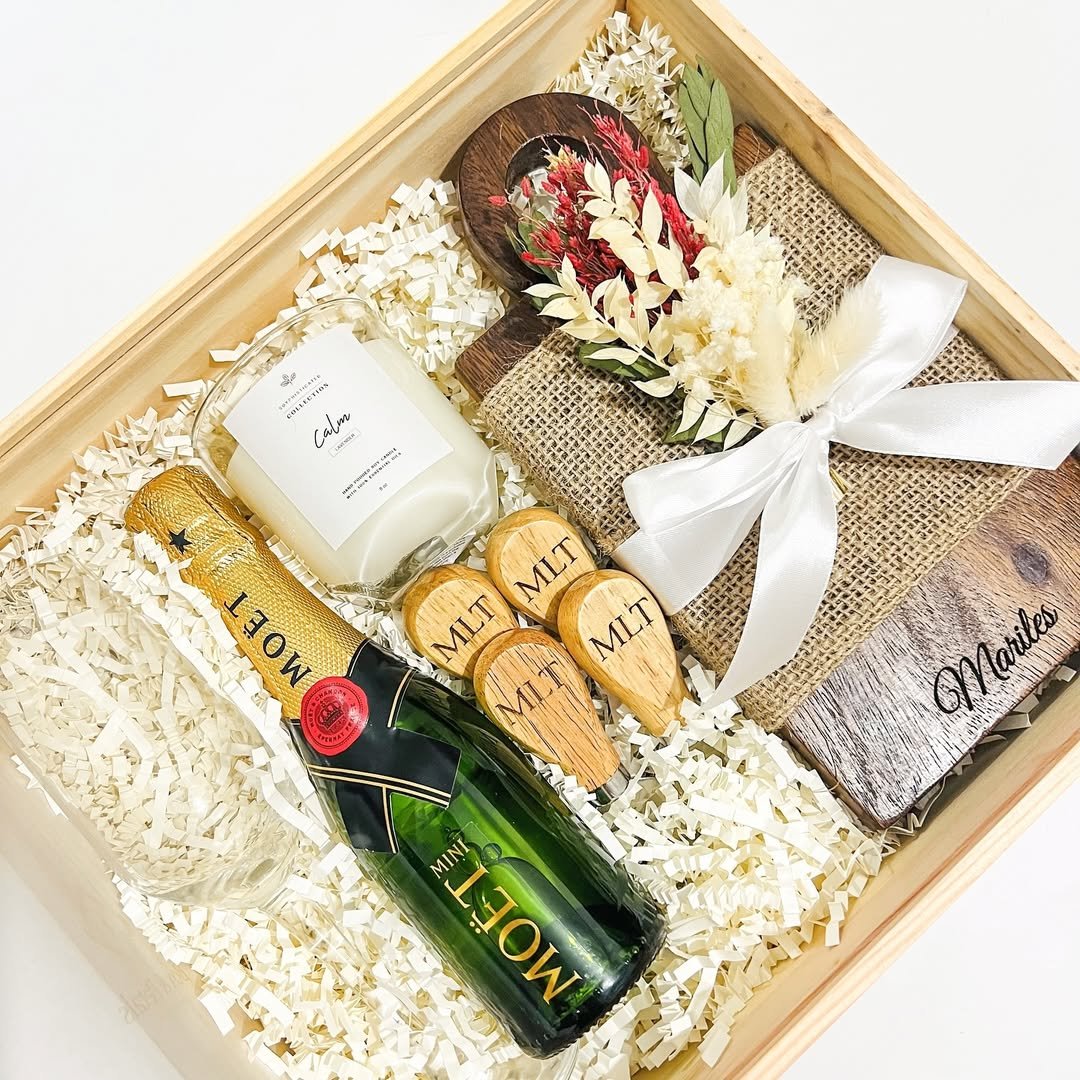 This gorgeous box from @boxandpetals.ph feels like a celebration wrapped in elegance. Between the mini Moët, the calming candle, and the personalized rustic touches, it’s the kind of gift that whispers, “You’re about to start the most beautiful chapter.”